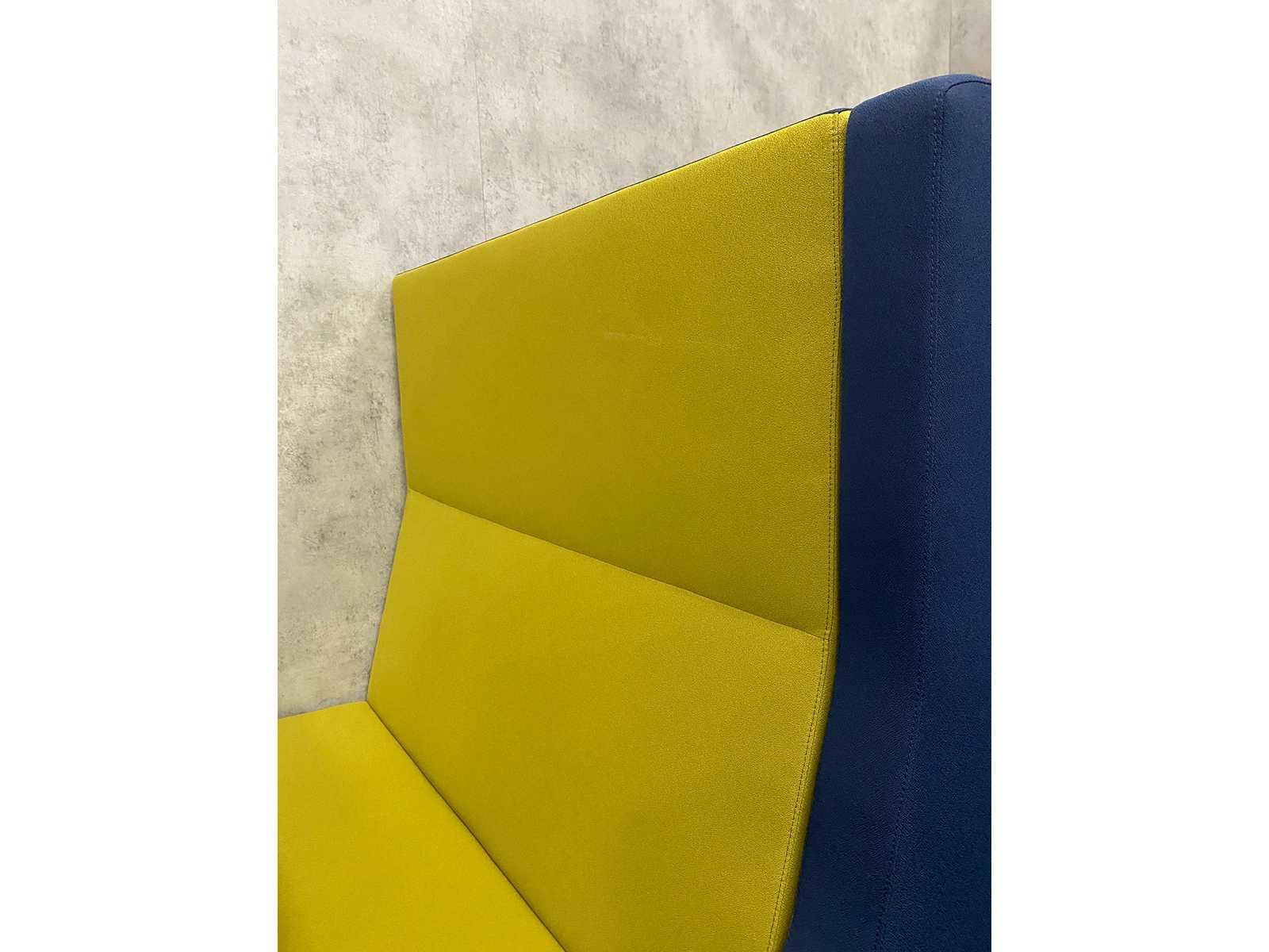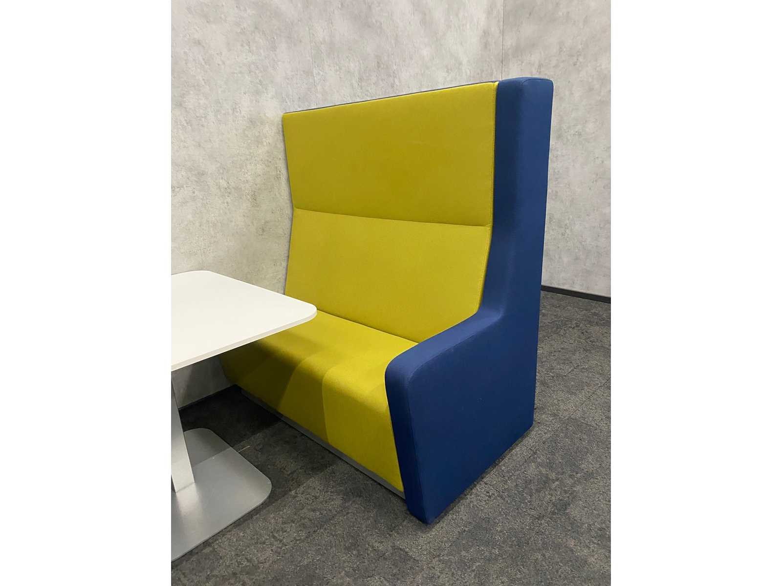 Afm. sofa ca. hxbxd 146x140x80 cm. zithoogte ca. 49 cm. ----- Afm. tafel ca. hxbxd 74.5x90x100 cm. Nee Kleur: blauw groen, wit