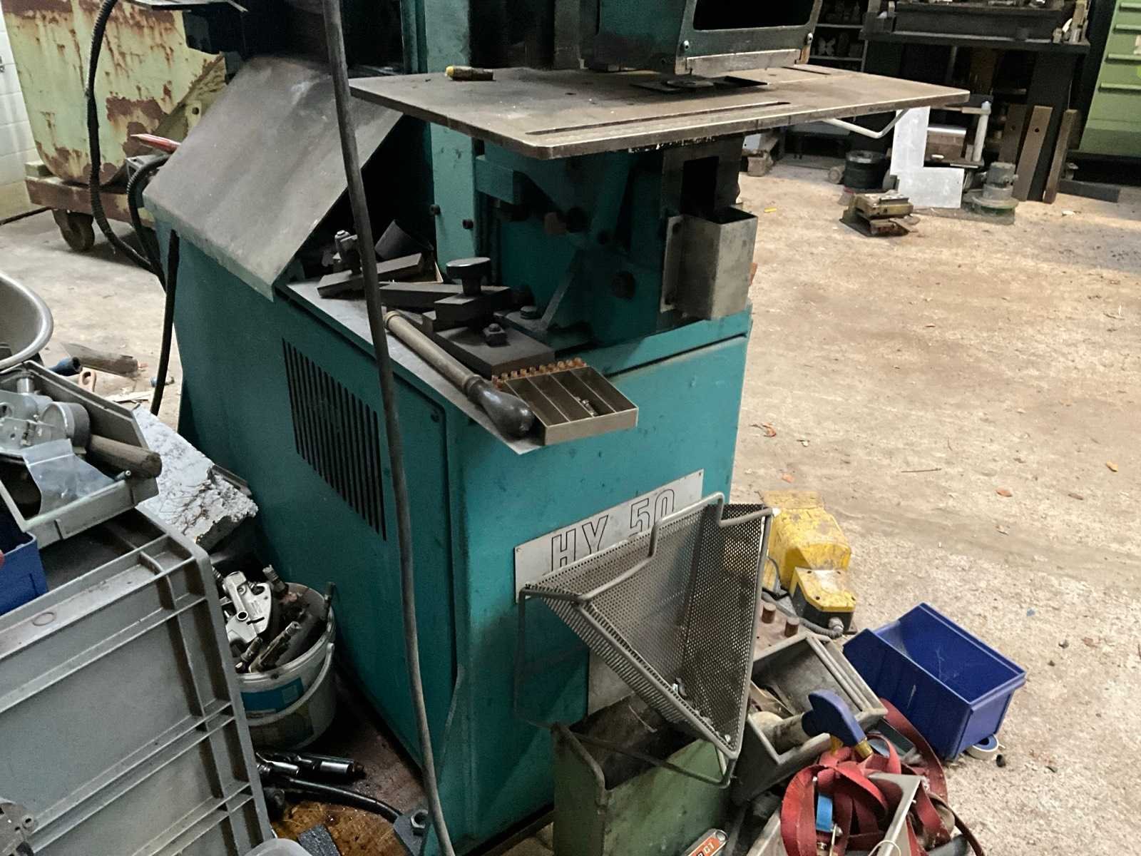 Inclusief diverse toebehoren. Nee Merk: IMS Type: HY 50 Bouwjaar: 1998 Serienummer: 2345 Voetbediening: true Aansluiting: 380V Afmeting l: 800mm Afmeting b: 1550mm Afmeting h: 1700mm