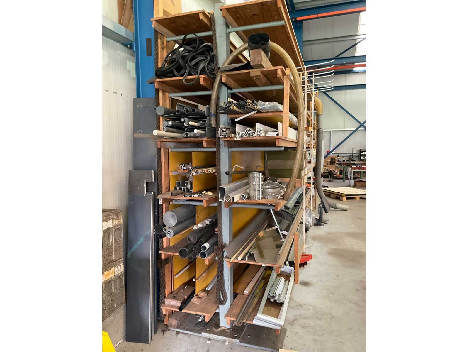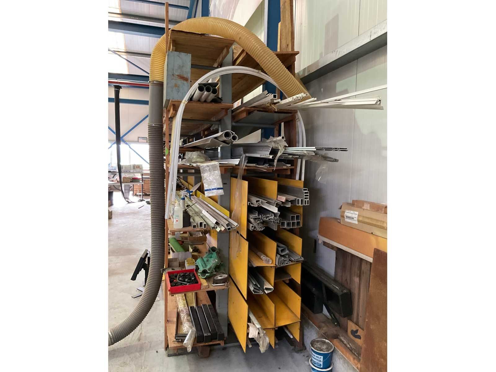 4 staanders hoogte 270 cm met totaal 48 liggers 45 cm diep; met bouwmaterialen o.a. ventilatieroosters; niet demontabel; afhalen op afspraak Nee