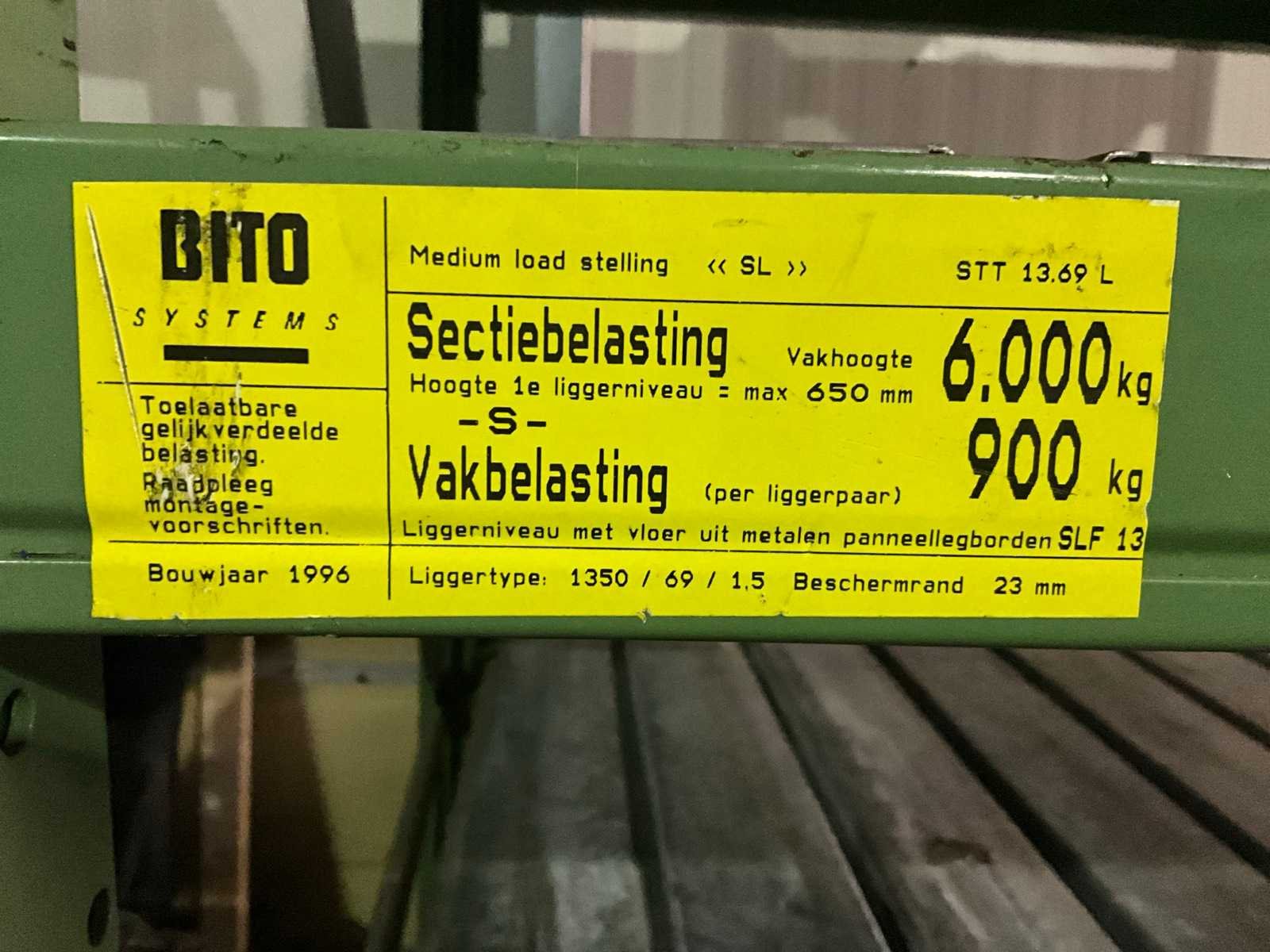 2 staanders 250x110 cm; en 12 liggers 148 cm lang; met stalen legborden; Nee Merk: Bito
