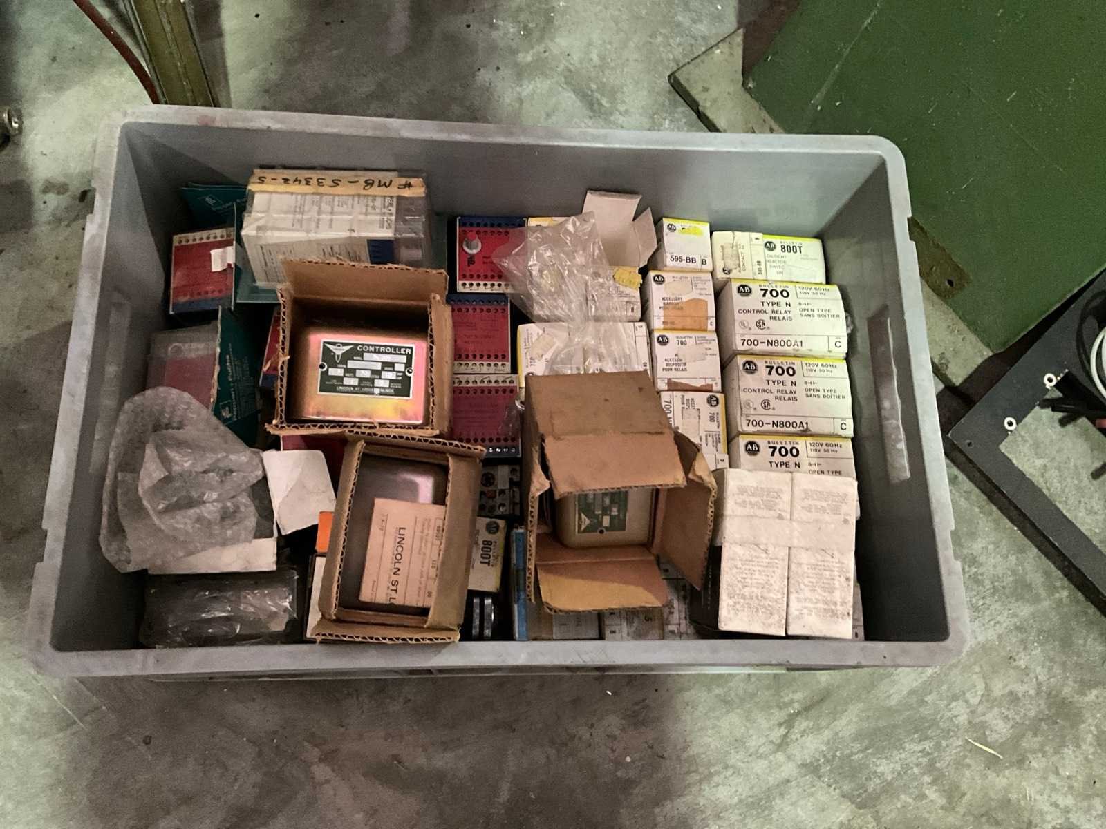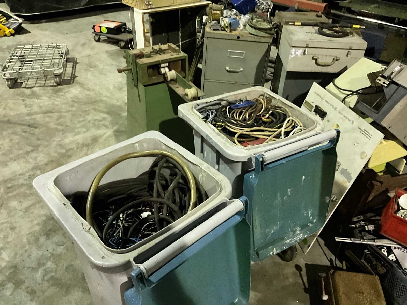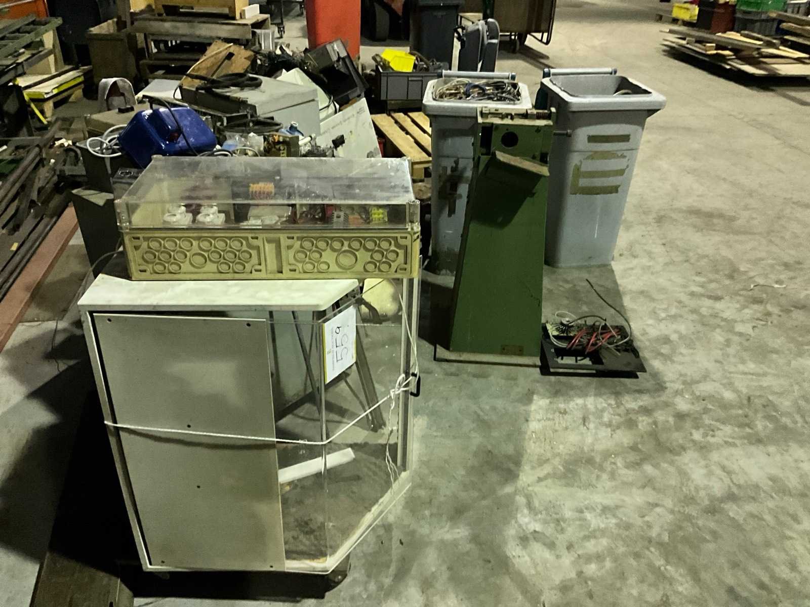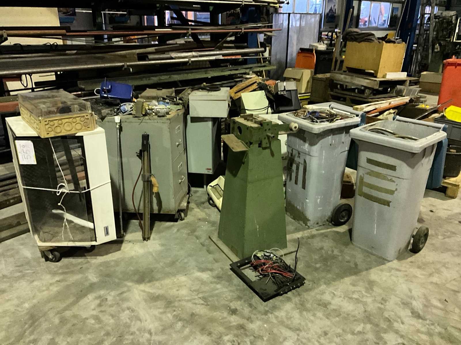Ladekast met inhoud elektromateriaal ; stalen kar met inhoud motoren en trafo's; krat Nee