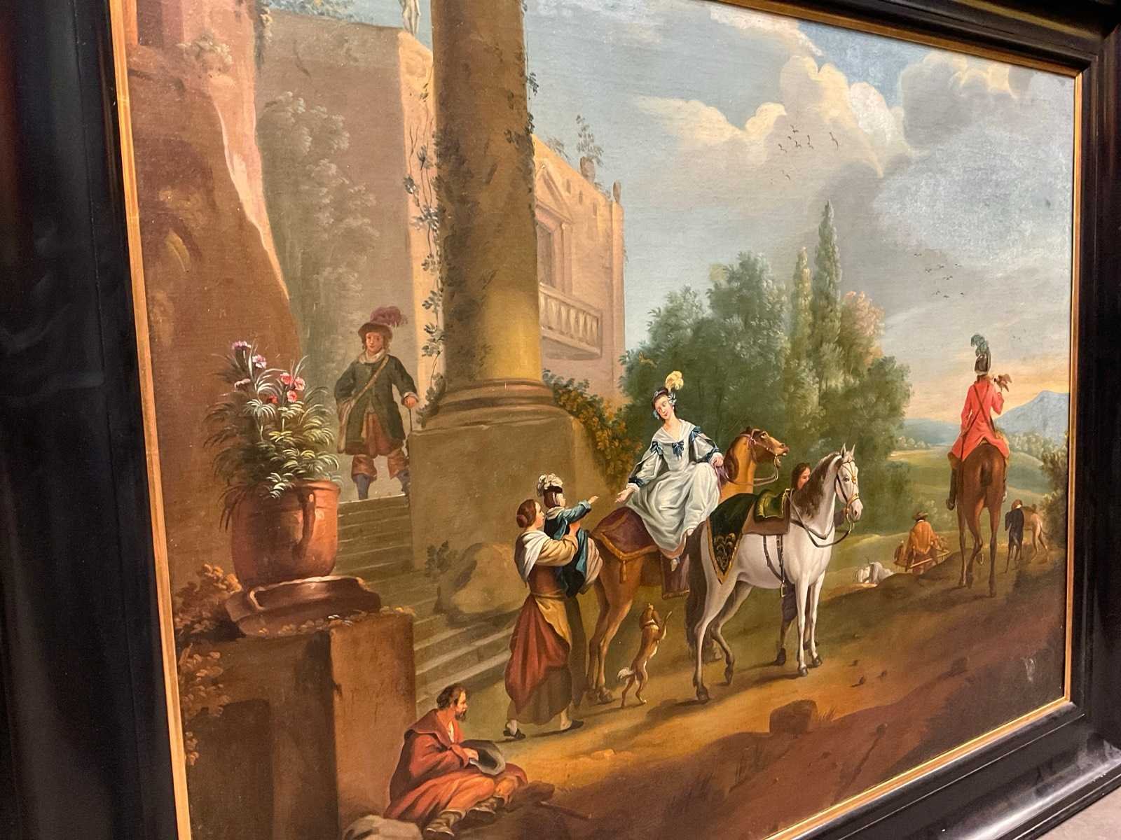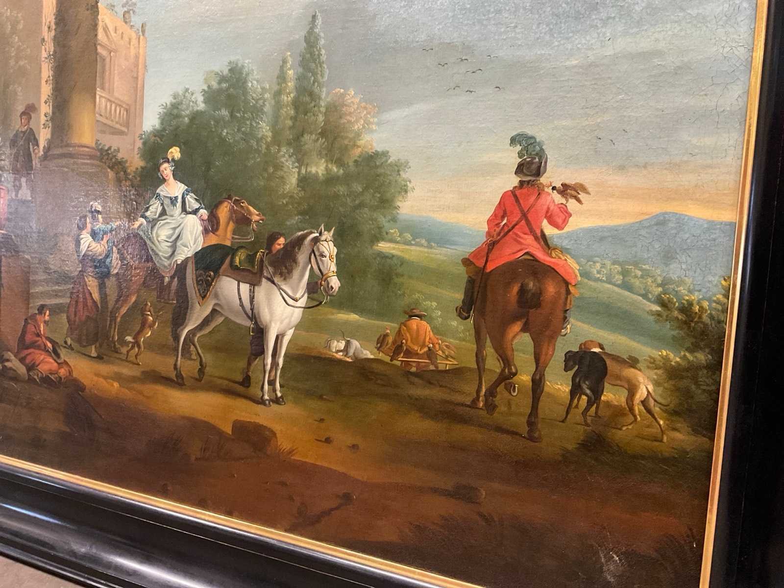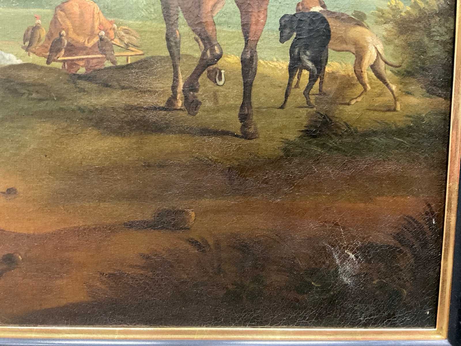 Philips Wouwerman Landscape with a stag hunt signed lower right with monogram size: 33,7 x 44,8 inch (83,5 x 114 cm) oil on canvas Nee Kunstenaar: Philips Wouwerman Titel van werk: Landschap met een hertenjacht Periode: 16de eeuw Datering: 1619 Techniek: Olieverf op doek Materiaal: Canvas Oplage: 1 Gesigneerd: Rechts in de hoek Hoogte: 87cm Breedte: 117cm Hoogte incl. lijst: 108cm Breedte incl. lijst: 140cm Herkomst: Haarlem (nl)