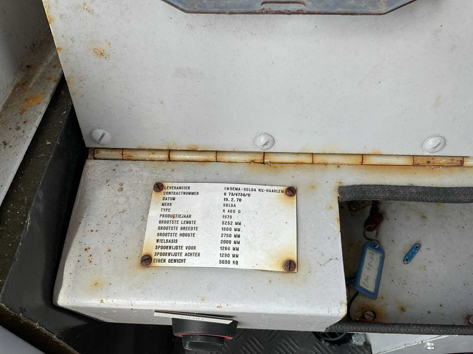 Deutz F 6 L 912 Motor 6 cilinder; Aandrijving hangt los Nee Merk: Rolba Type: R 400 D Bouwjaar: 1970 Serienummer: G73/4730/11 Werkbreedte: 1800mm Eigen gewicht: 5030kg Totale afmeting L: 5252mm Totale afmeting Breedte: 1800mm Totale afmeting Hoogte: 2750mm