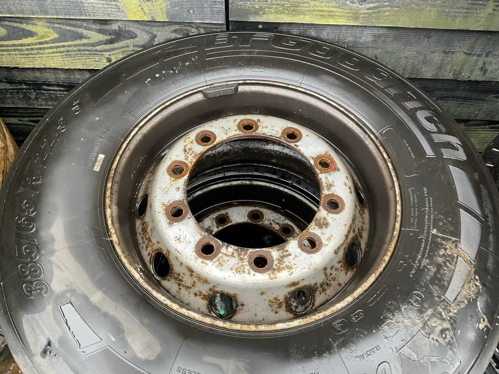 Nee Merk: BFGoodrich Type: Route Control Bandenmaat: 385/65 Velgsoort: 10-gaats Velgmaat: 22,5 Steekmaat: 340 Naafdiameter: 280mm