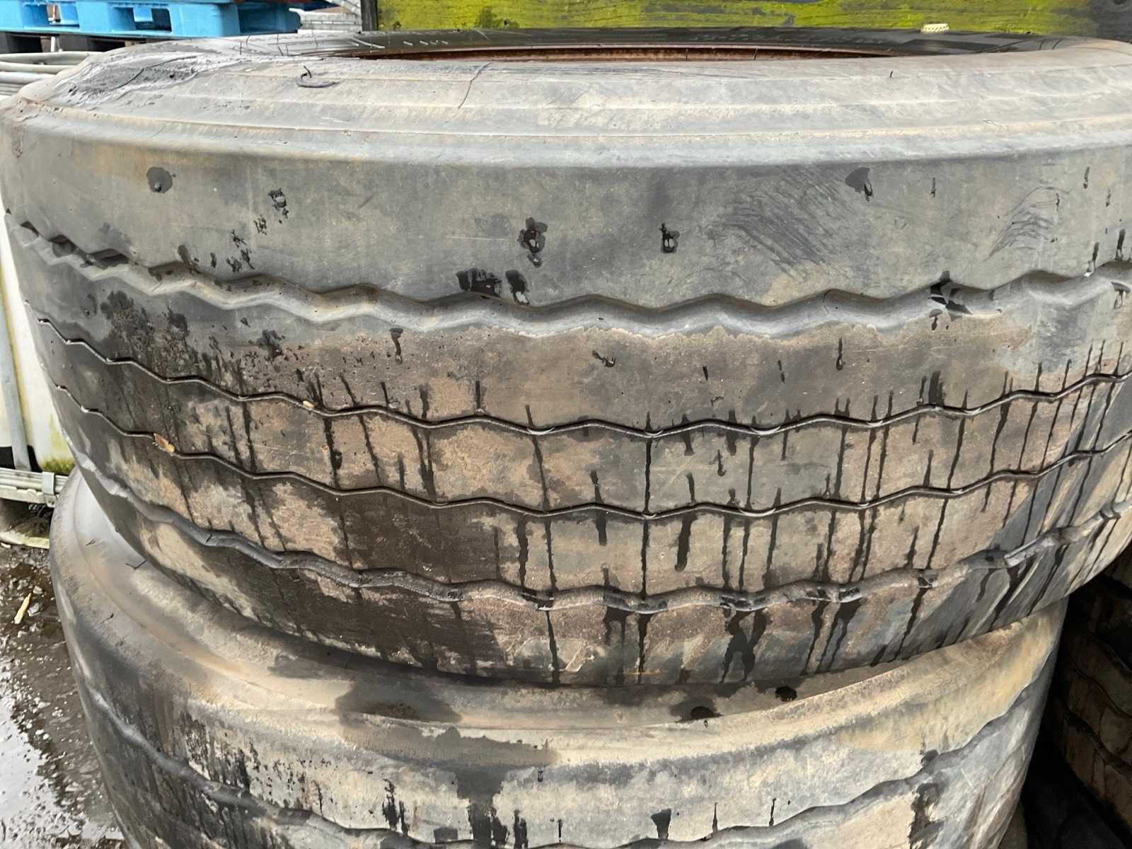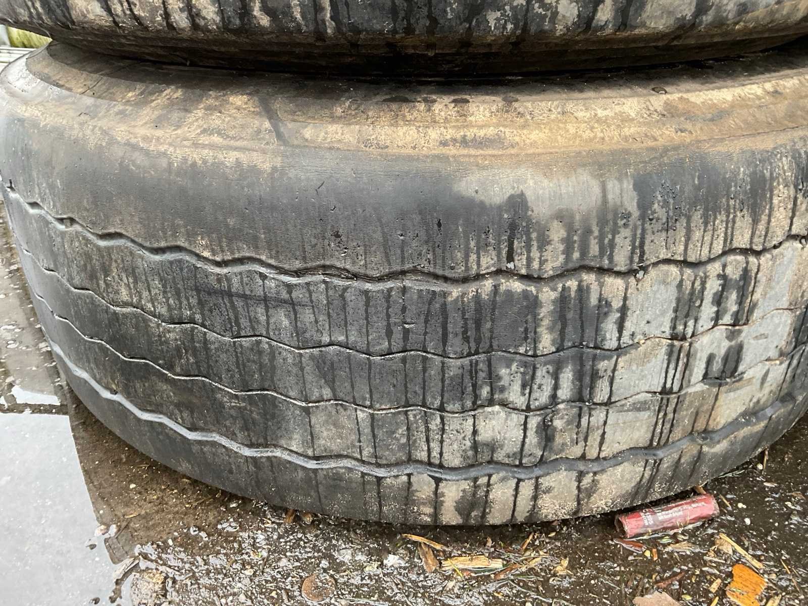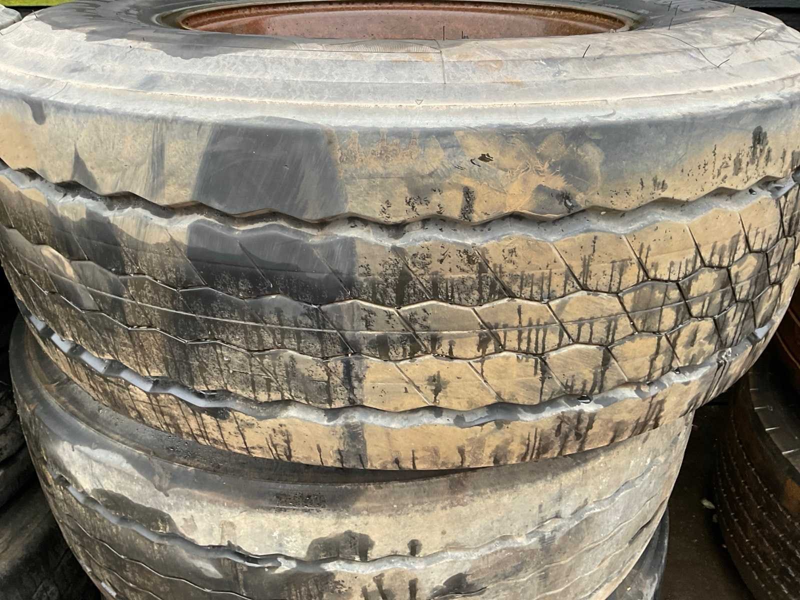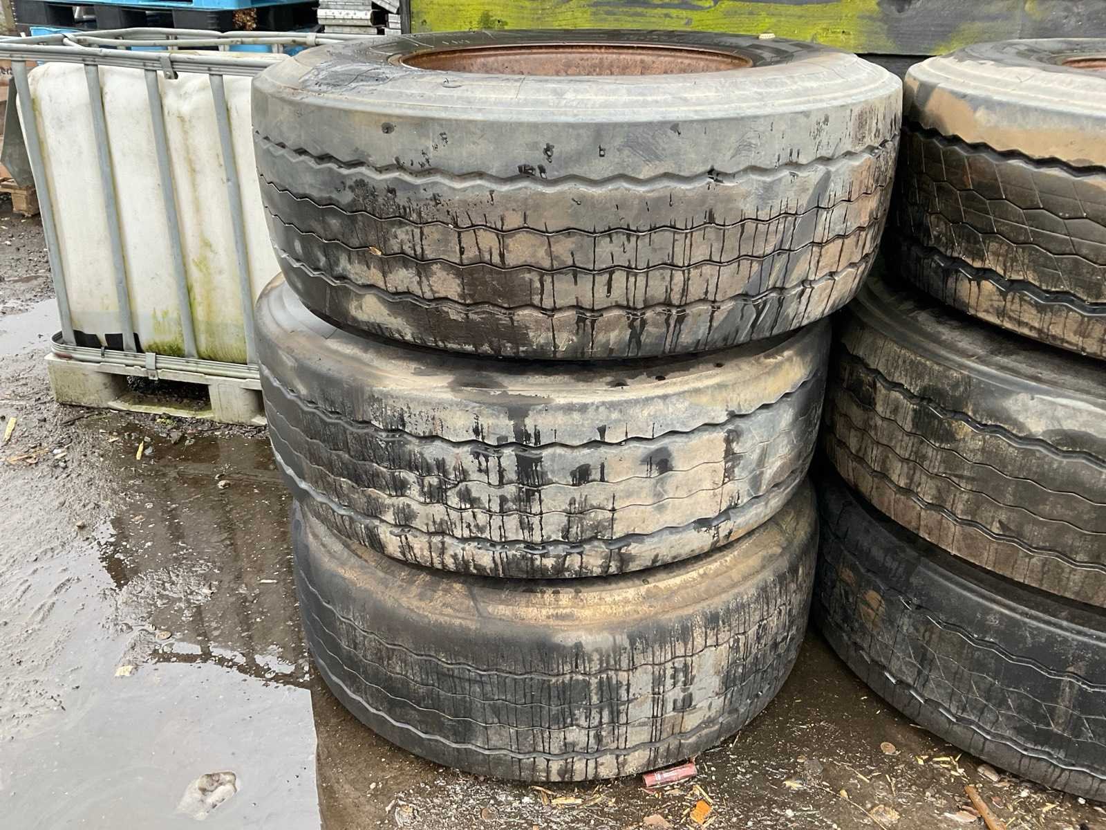 Diverse banden op 10-gaats stalen velgen, waaronder Bridgestone Nee Velgmaat: 22,5 Steekmaat: 330 Naafdiameter: 280mm