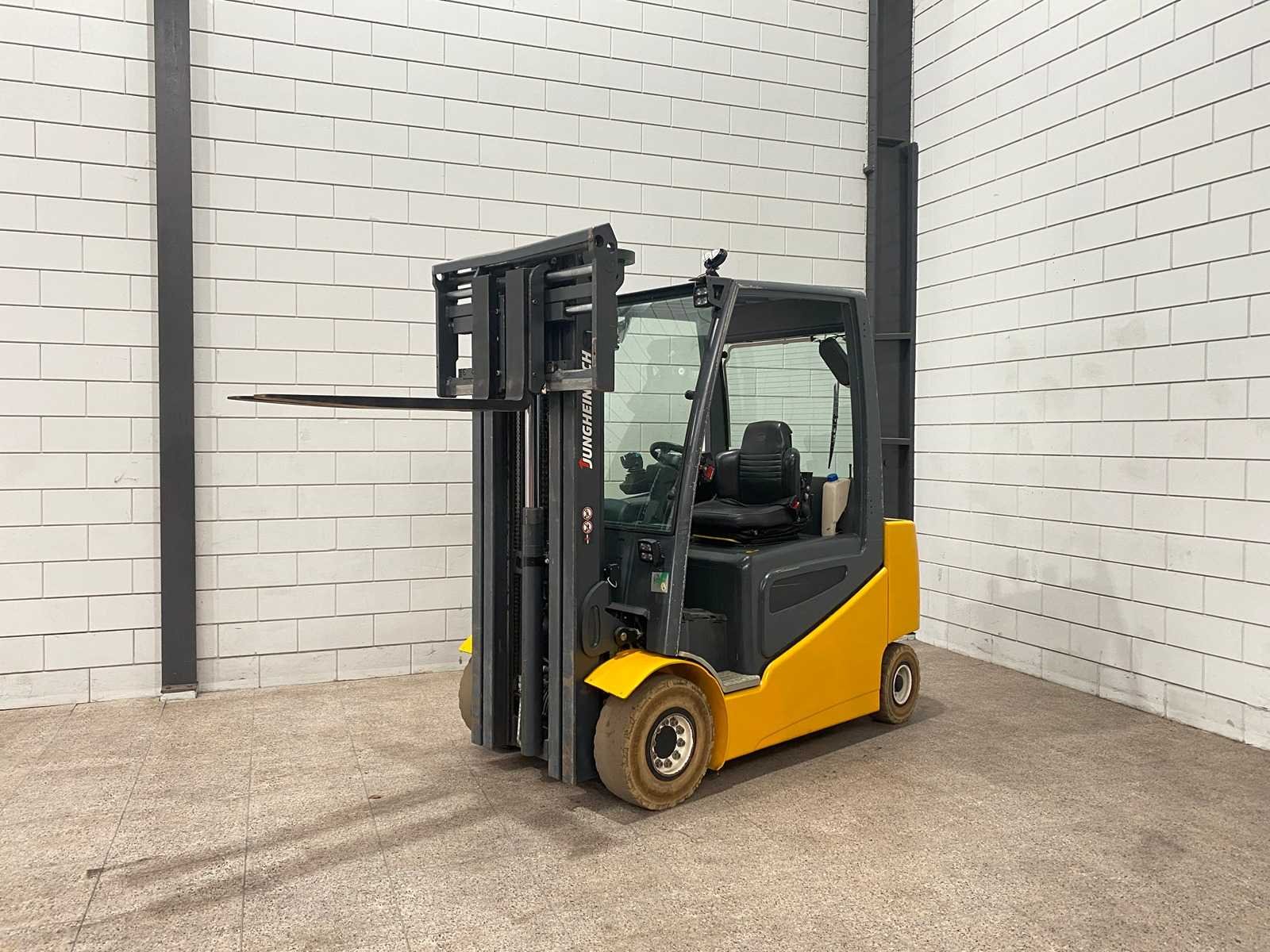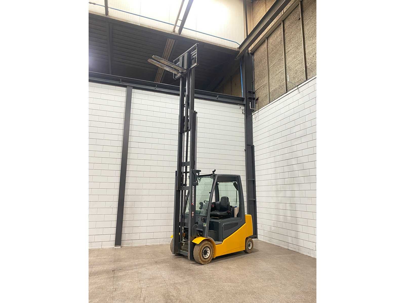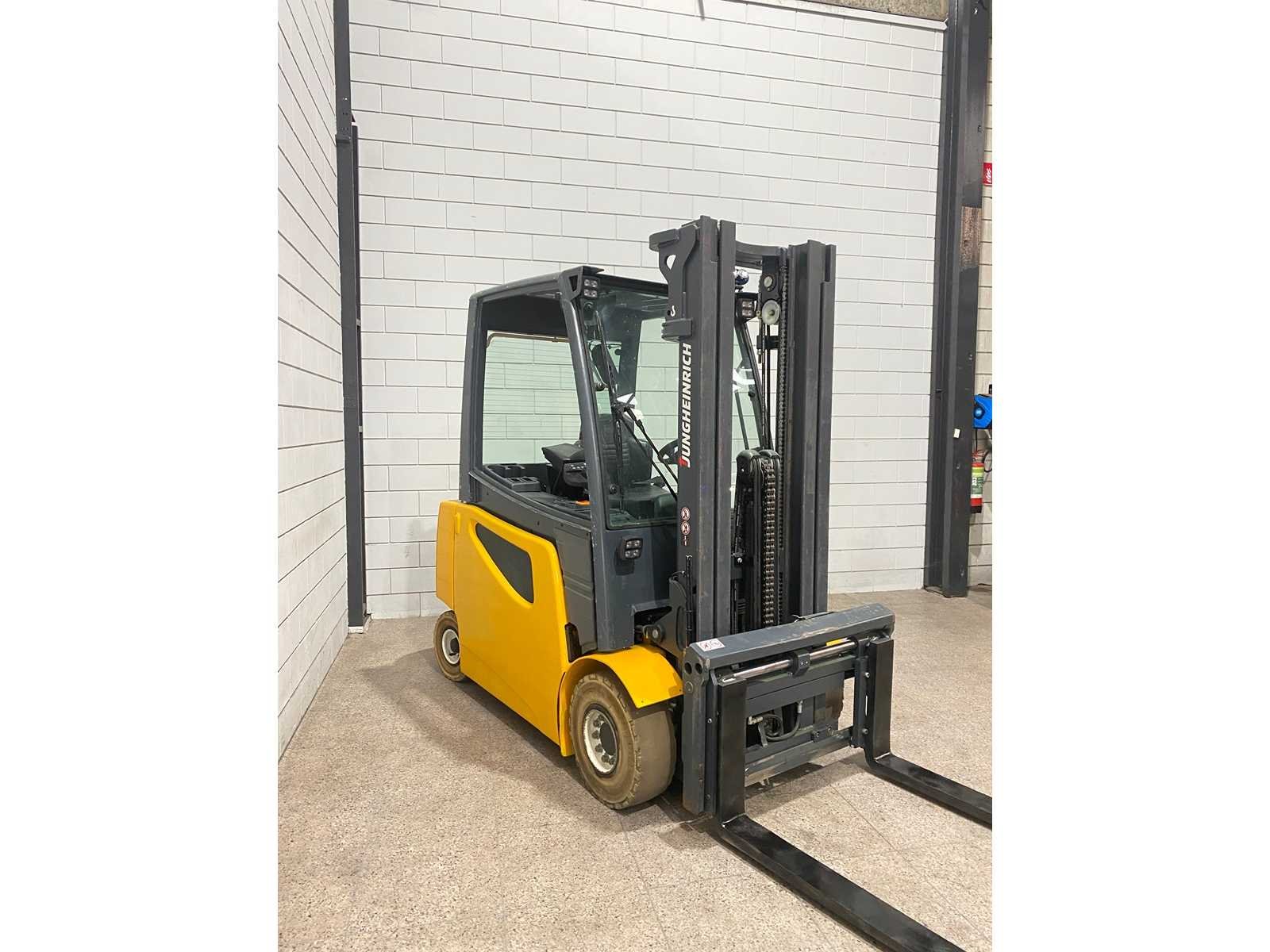 Nee Merk: Jungheinrich Type: EFG 425k Bouwjaar: 2015 Serienummer: FN491966 Brandstof: Elektrisch Aantal wielen: 4 Afgelezen urenstand: 15963 Free-lift: true Side-shift: true Triple mast: true Eigen gewicht: 4555kg Hefvermogen: 2500kg Lepellengte: 1000mm Hefhoogte: 5030mm Minimale doorrijhoogte: 2290mm Totale afmeting L: 2550mm Totale afmeting Breedte: 1200mm Totale afmeting Hoogte: 2290mm