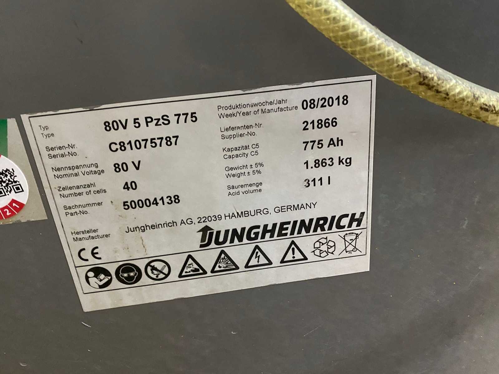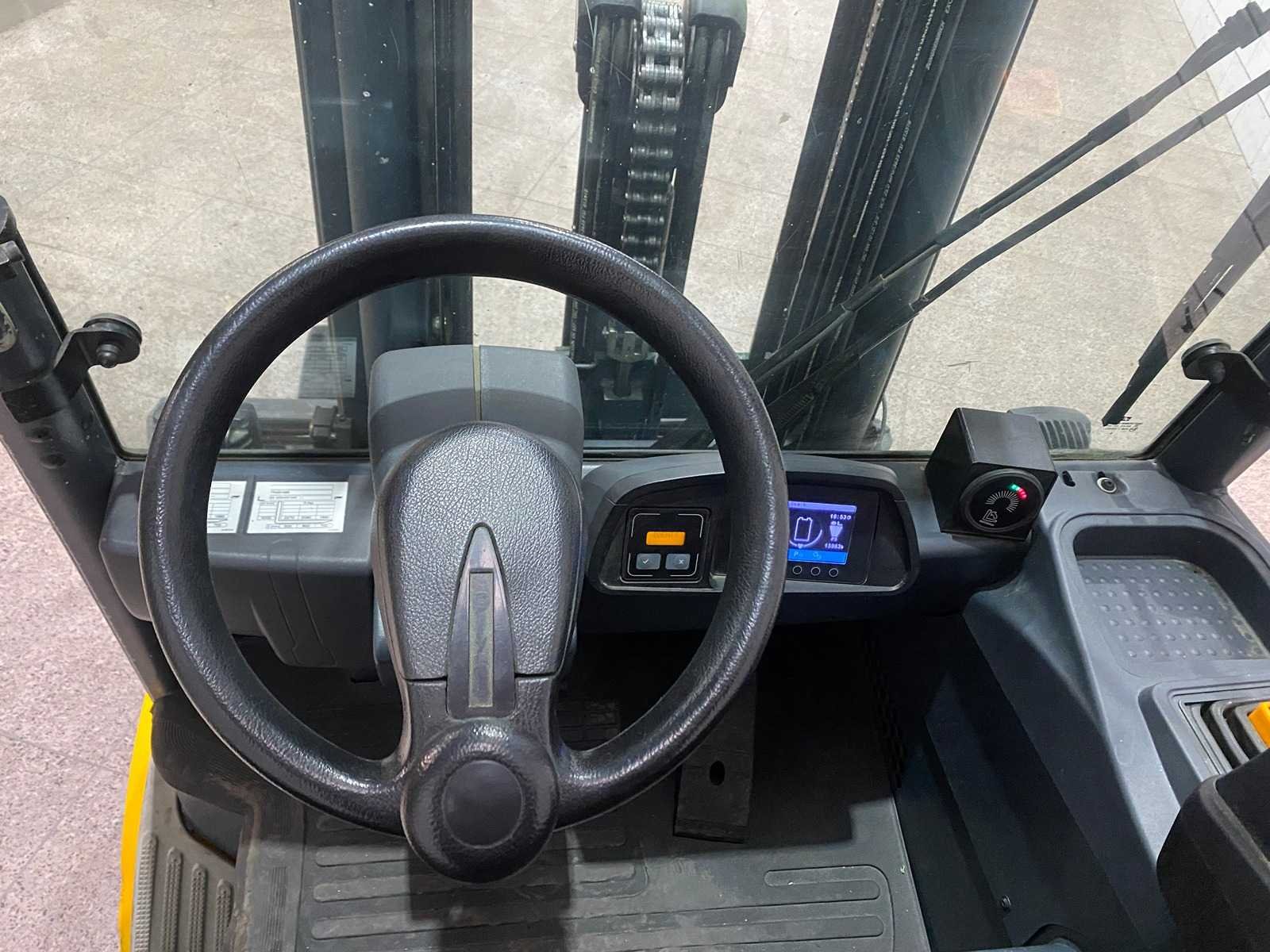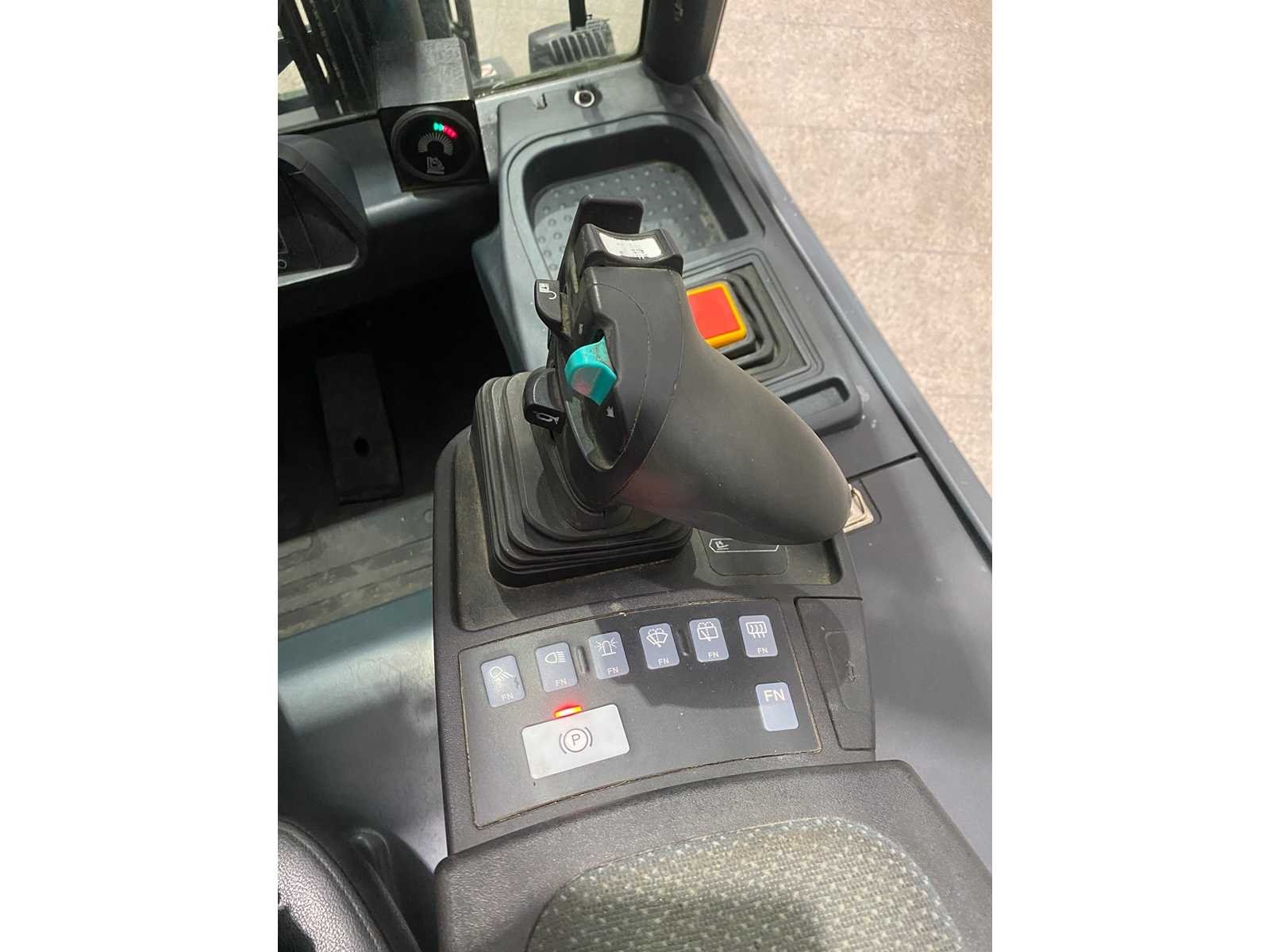 Nee Merk: Jungheinrich Type: EFG 425k Bouwjaar: 2015 Serienummer: FN491966 Brandstof: Elektrisch Aantal wielen: 4 Afgelezen urenstand: 15963 Free-lift: true Side-shift: true Triple mast: true Eigen gewicht: 4555kg Hefvermogen: 2500kg Lepellengte: 1000mm Hefhoogte: 5030mm Minimale doorrijhoogte: 2290mm Totale afmeting L: 2550mm Totale afmeting Breedte: 1200mm Totale afmeting Hoogte: 2290mm