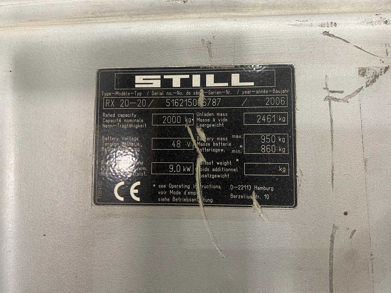 Nee Merk: Still Type: RX20-20 Bouwjaar: 2006 Serienummer: 516215006787 Brandstof: Elektrisch Mast: Duplex Soort band: Volrubber Aantal wielen: 3 Afgelezen urenstand: 8385 Accu lader: true Free-lift: true Side-shift: true Duplex mast: true Eigen gewicht: 3411kg Hefvermogen: 200kg Lepellengte: 1200mm Hefhoogte: 3310mm Vol rubber banden: true Minimale doorrijhoogte: 2130mm Totale afmeting L: 2200mm Totale afmeting Breedte: 1150mm Totale afmeting Hoogte: 2130mm