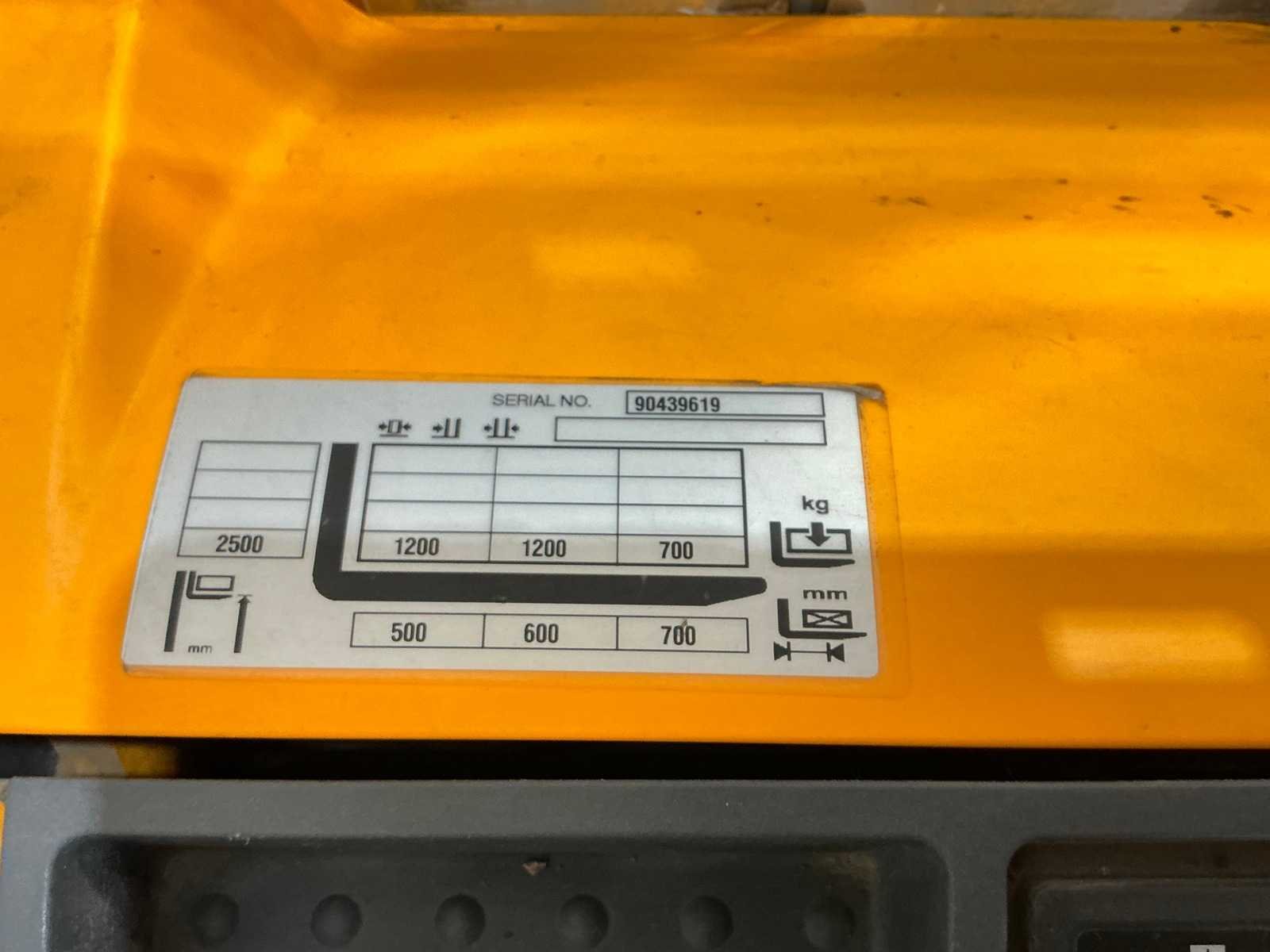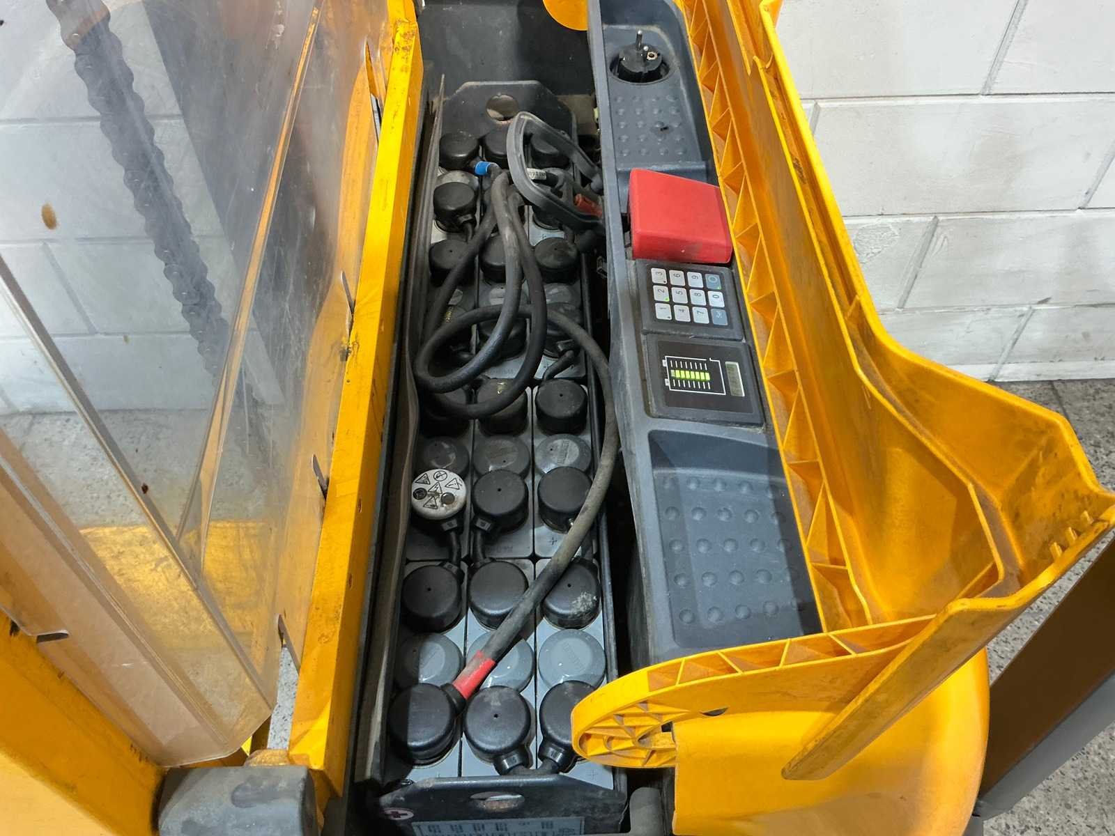 No Merk: Jungheinrich Type: EJC 112 Bouwjaar: 2014 Serienummer: 90439619 Hefvermogen: 1200kg Hefhoogte: 2600mm Lepellengte: 1150mm Afgelezen urenstand: 1371 Eigen gewicht: 830kg Totale afmeting L: 1822mm Totale afmeting Breedte: 800mm Totale afmeting Hoogte: 1700mm Accu lader: true