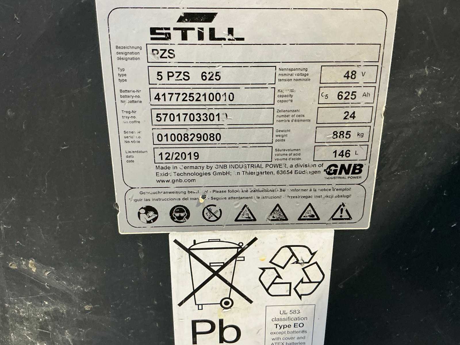 Keuring tot 03-2026 Nee Merk: Still Type: RX20-16C Bouwjaar: 2021 Serienummer: 516220Y00285 Brandstof: Elektrisch Mast: Triplex Soort band: Volrubber Aantal wielen: 3 Afgelezen urenstand: 11226 Accu lader: true Free-lift: true Side-shift: true Hydraulisch verstelbare lepels: true Triple mast: true Eigen gewicht: 3468kg Hefvermogen: 1600kg Lepellengte: 1200mm Hefhoogte: 7870mm Vol rubber banden: true Totale afmeting L: 1861mm Totale afmeting Breedte: 1200mm Totale afmeting Hoogte: 3210mm