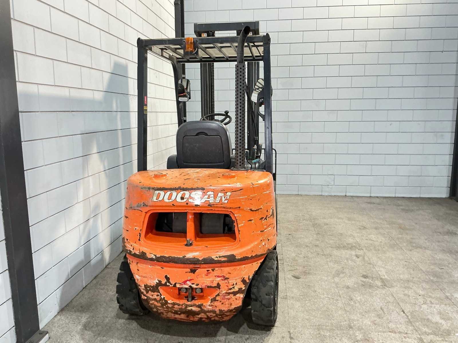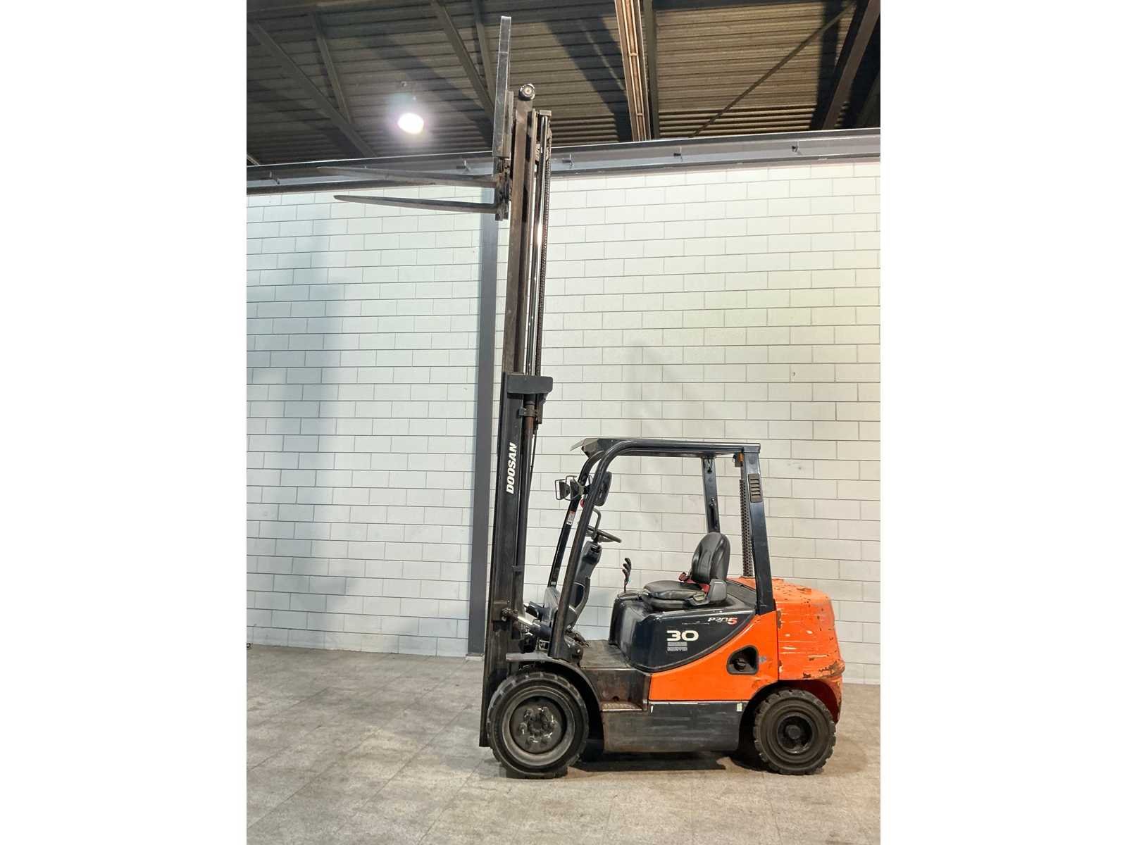 Nee Merk: Doosan Type: D30S-5 Bouwjaar: 2014 Serienummer: FDA06-1240-16754 Brandstof: Diesel Mast: Duplex Soort band: Volrubber Aantal wielen: 4 Afgelezen urenstand: 8279 Side-shift: true Duplex mast: true Eigen gewicht: 4560kg Hefvermogen: 3000kg Lepellengte: 1200mm Hefhoogte: 3950mm Vol rubber banden: true Totale afmeting L: 2750mm Totale afmeting Breedte: 1160mm Totale afmeting Hoogte: 2620mm Diesel: true