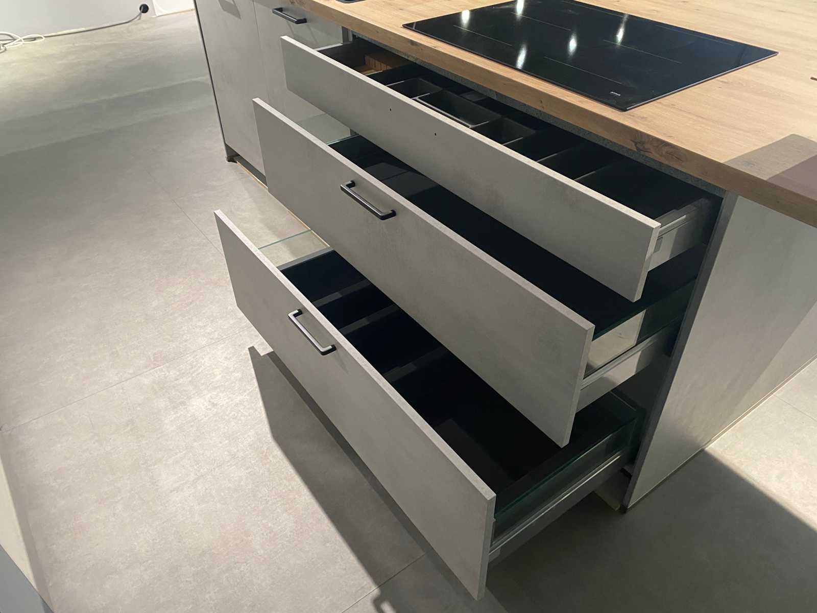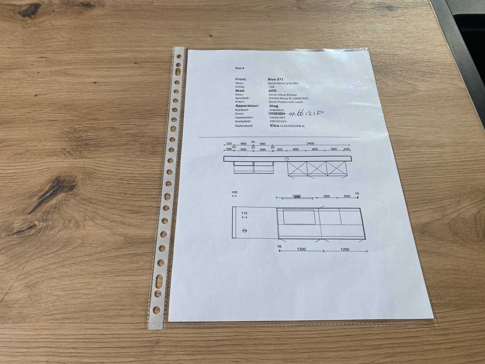 Reeds gedemonteerd en ingepakt op pallets. (afstapelen, omruilen of statiegeld per pallet); Pallets zijn niet inbegrepen; statiegeld betalen bij afhalen, of pallets afstapelen; werkblad niet ingepakt op pallets (25-STP-02646) Nee Merk: Nobilia Type keukenopstelling: Eiland Lengte: 180cm Breedte: 60cm Hoogte: 217cm Kraan: Gessi Gootsteen: Schock Aanrechtblad: Decor eikan Artisan Fornuis: Atag HI07471EV Koelkast: Atag KD62102A Softclose: true Oven: Atag OX66121D Afzuigkap: Elica Cloudseven-A Vaatwasser: Atag VA8113QT Lengte kookeiland: 366,6cm Breedte kookeiland: 110cm Hoogte kookeiland: 93cm Kleur: Decor beton grijs