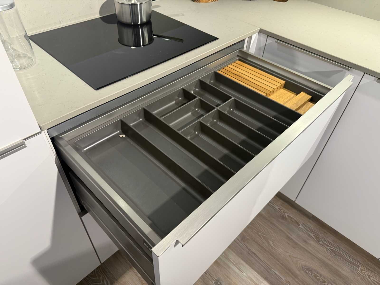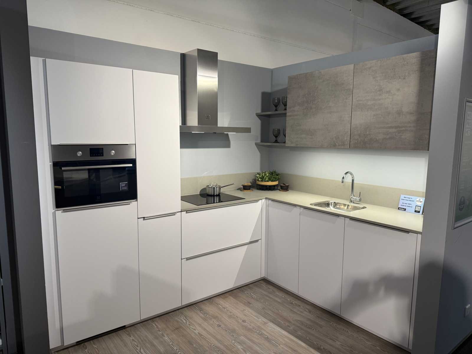 Afmetingen linkerdeel circa 270x60x223 cm; afmetingen rechterdeel circa 244x60x100 cm; reeds gedemonteerd en ingepakt op pallets. (afstapelen, omruilen of statiegeld per pallet); Pallets zijn niet inbegrepen; statiegeld betalen bij afhalen, of pallets afstapelen; werkblad niet ingepakt op pallets (25-RKS-02662) Nee Merk: Nolte Type keukenopstelling: Hoek Aanrechtblad: Kunststof Magnetron: Electrolux Fornuis: Pelgrim Koelkast: Zanussi ZBA19020SA Softclose: true Afzuigkap: Electrolux Vaatwasser: Zanussi ZDT2403FA Kleur: Licht grijs