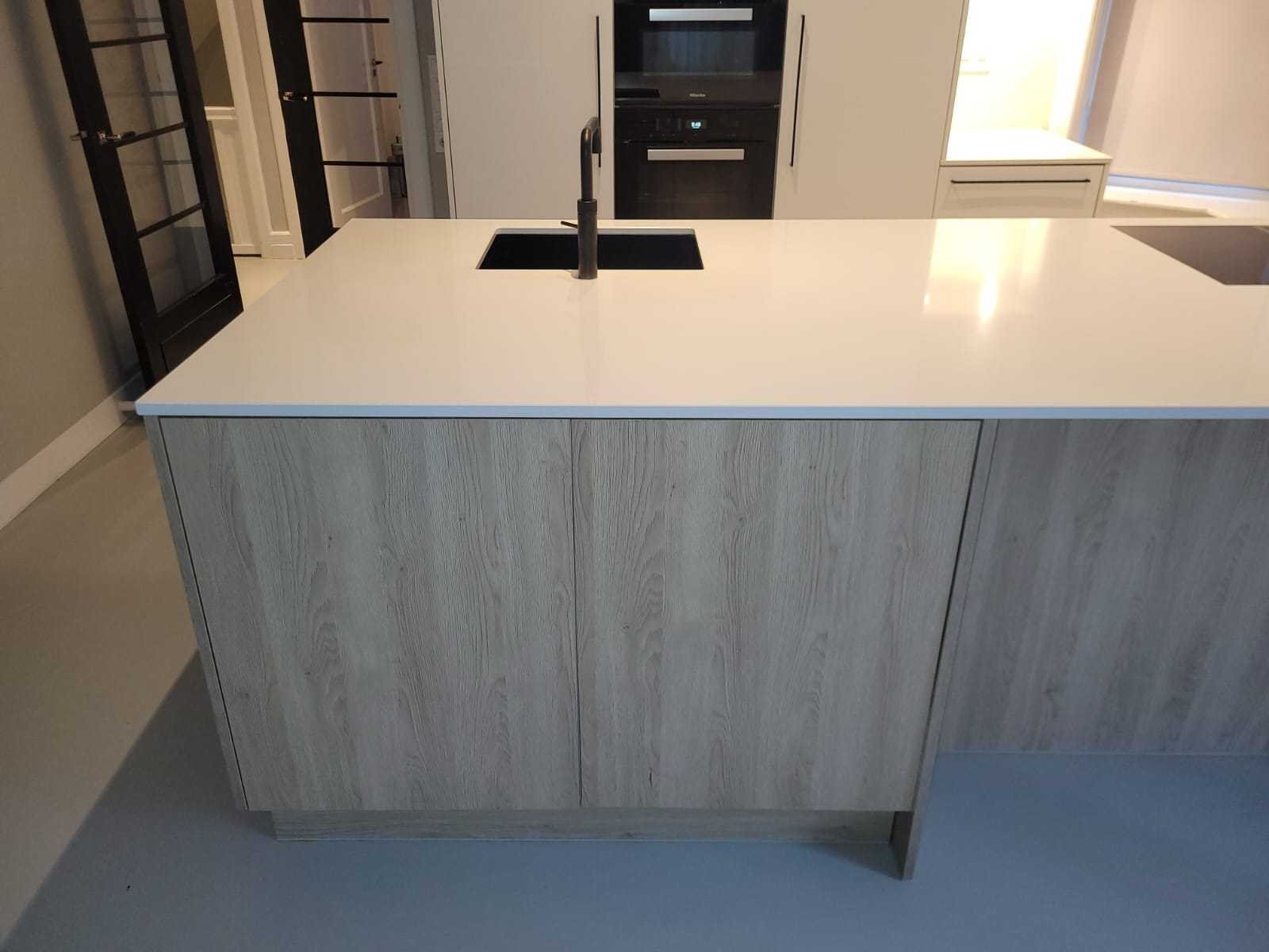 Conditie gebruikt; Afmetingen eiland lxb ca. 309x120 cm; afmetingen rechte deel lxb ca. 245x70 cm; hoogte ca 300 cm: Reeds gedemonteerd en ingepakt op pallets. (afstapelen, omruilen of statiegeld per pallet); Pallets zijn niet inbegrepen; statiegeld betalen bij afhalen, of pallets afstapelen; werkblad niet ingepakt op pallets Nee Type keukenopstelling: Eiland Kraan: Aanwezig Gootsteen: Aanwezig Aanrechtblad: Steen wit Magnetron: Miele Fornuis: Bora Koelkast: Miele Vriezer: Miele Softclose: true Oven: Miele Vaatwasser: Miele Hoofdkleur: Hout en Wit