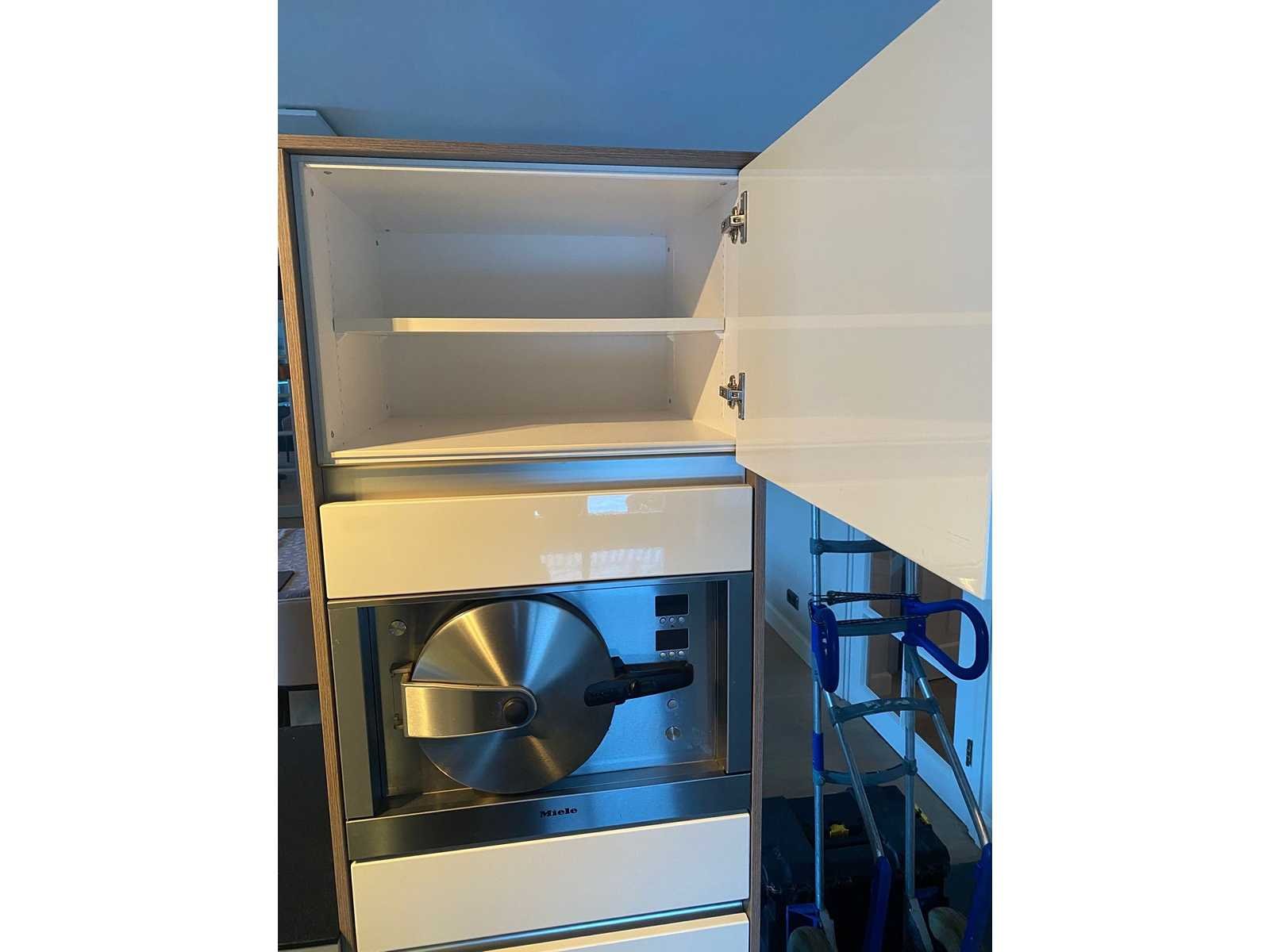 Conditie gebruikt; met Miele stoomoven; ingepakt op 4 pallets; Afmetingen deel 1 lxb ca. 540x60 cm hoge kast 160 cm; afmetingen deel 2 lxb ca. 307x60 cm hoge kast ca. 197 cm hoog; Reeds gedemonteerd en ingepakt op pallets. (afstapelen, omruilen of statiegeld per pallet); Pallets zijn niet inbegrepen; statiegeld betalen bij afhalen, of pallets afstapelen; werkblad niet ingepakt op pallets Nee Merk: Siematic Type keukenopstelling: Parallel Kraan: Grohe Gootsteen: Franke Aanrechtblad: Graniet Fornuis: Atag Koelkast: Bosch Softclose: true Oven: Miele Vaatwasser: Miele Hoofdkleur: Wit