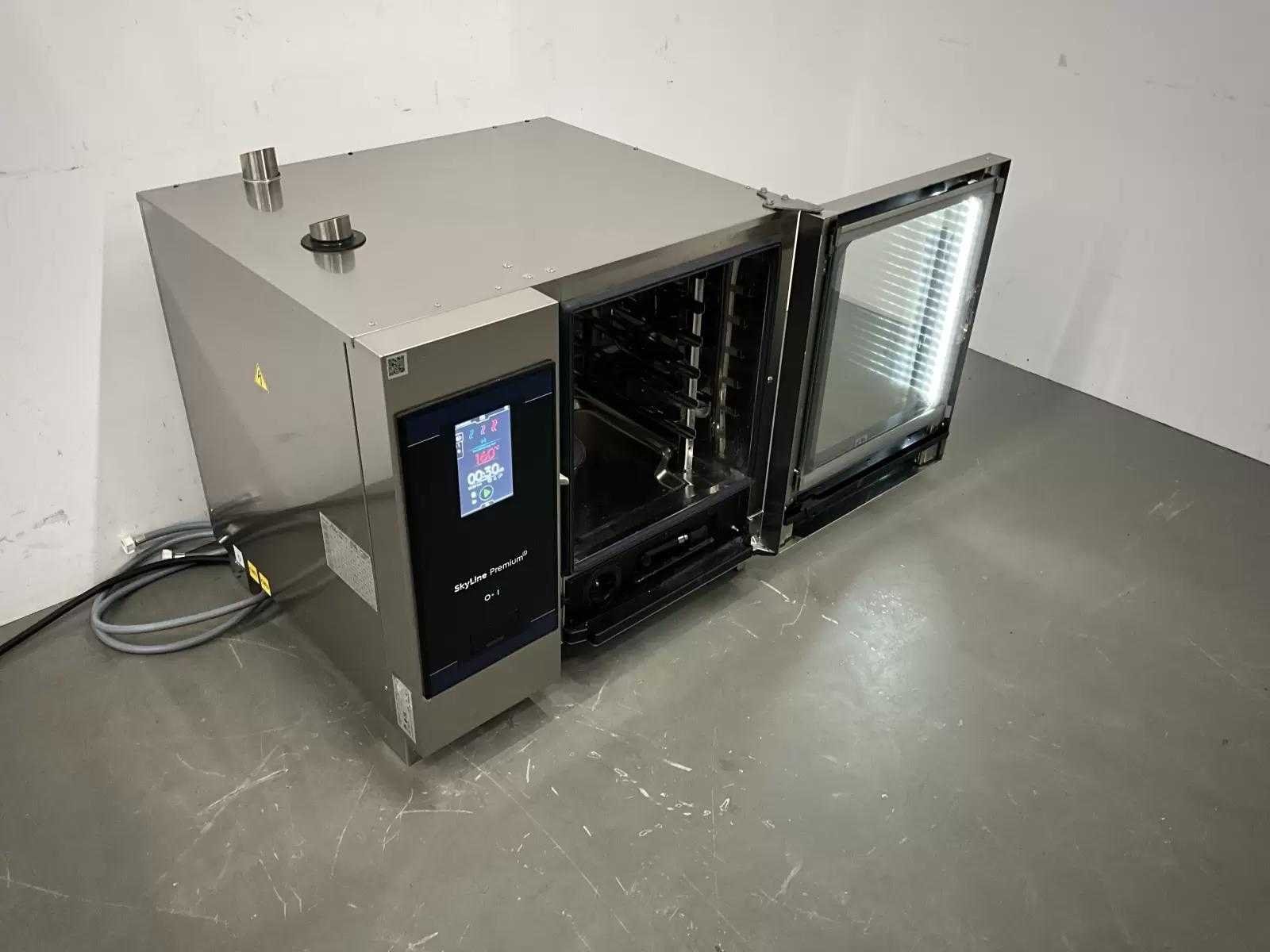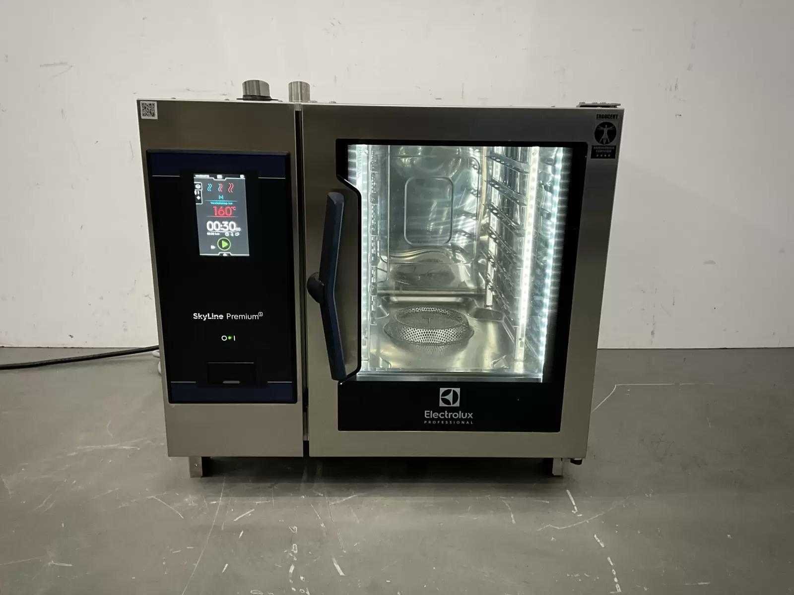 Capaciteit: 6 Niveaus Draairichting deur Rechts draaiend. Bereidingswijzen: Convectie, Stomen, Combi Hetelucht-Stoom, Cook & Hold, Regenereren, Lage Temperatuur Stomen. V.v. Luchtvochtigheid controle, Kerntemperatuur Thermometer, Automatisch Reinigingssysteem. Nee Merk: Electrolux Type: Skyline Premium Totale afmeting L: 870mm Totale afmeting Breedte: 780mm Totale afmeting Hoogte: 810mm Aansluiting: 400V Lengte: 87cm Breedte: 78cm Hoogte: 81cm