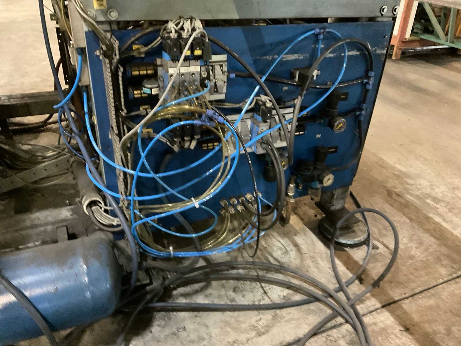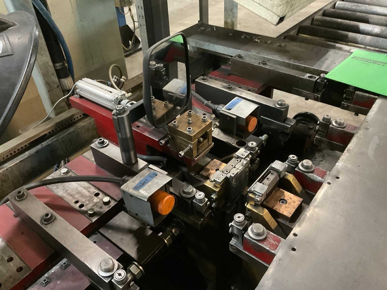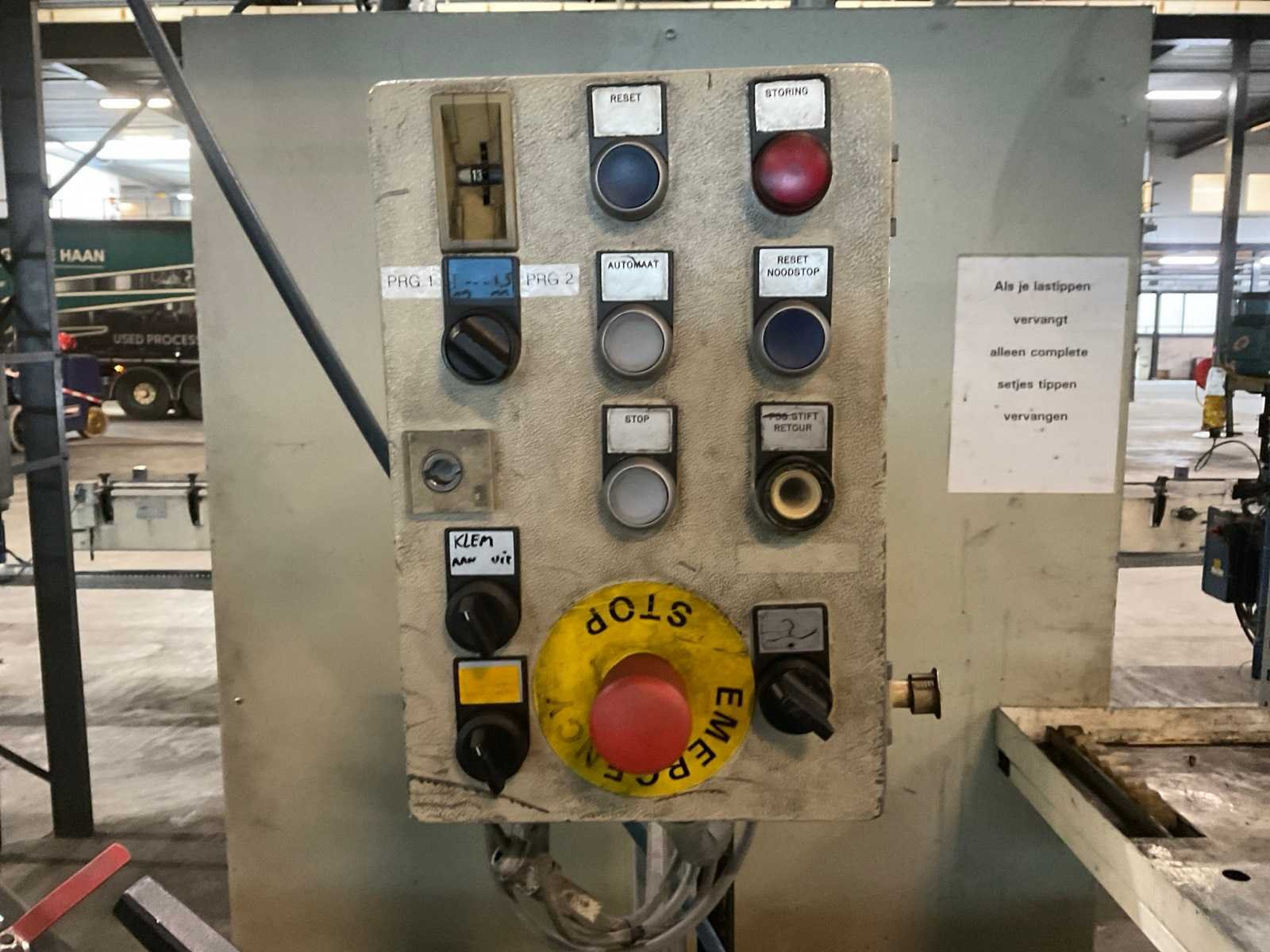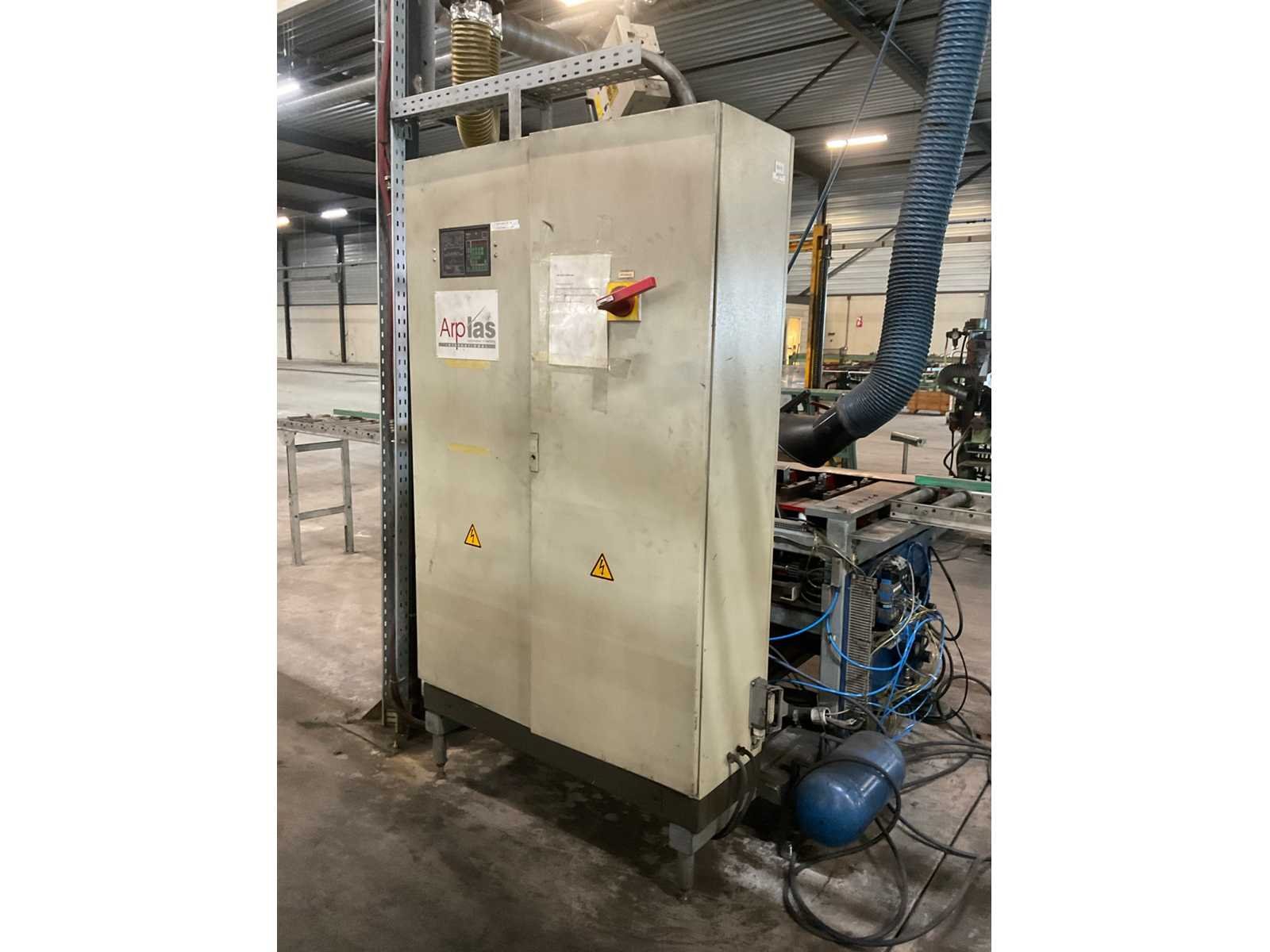 Minimale luchtdruk: 5,4 bar, maximaal: 12 bar. Inclusief: Besturingskast en aan en afvoertafel. Nee Merk: Arplas Type: SDO125 Bouwjaar: 1998 Serienummer: 7021.98.10.01.CE Max. lasvermogen: 125kVA Werkslag: 36mm Aansluiting: 400V Afmeting l: 6500mm Afmeting b: 1800mm Afmeting h: 2160mm