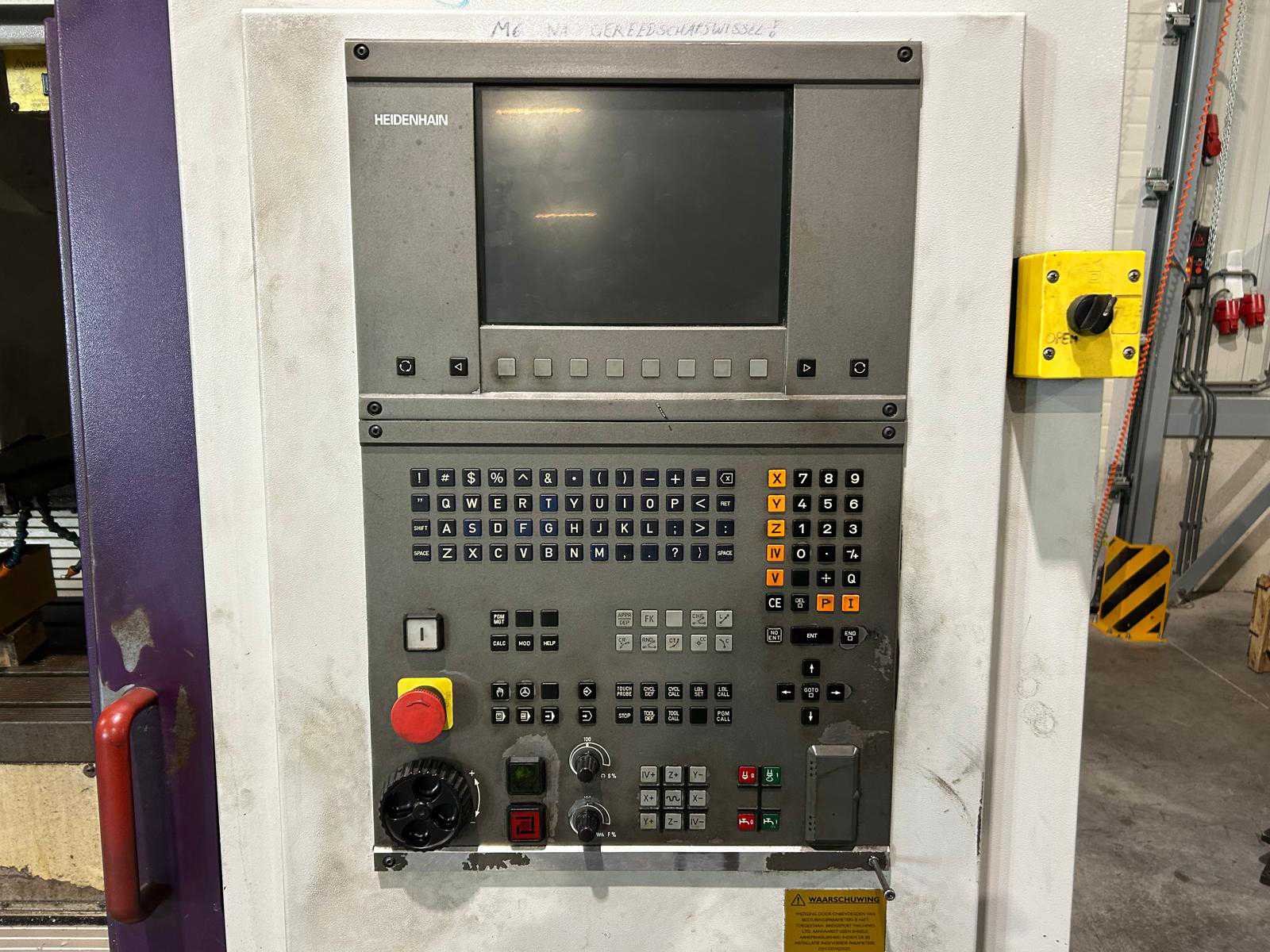 Posities op ATC: 20 De extra kosten bestaan uit de laadkosten Nee Merk: Bridgeport Type: VMC 800/22 Bouwjaar: 1999 Serienummer: 821599 Opname iso: BT-40 Verplaatsing x-as: 800mm Verplaatsing y-as: 510mm Verplaatsing z-as: 600mm Snelheid tot n =: 6000rpm CNC-besturing, merk, type: Heidenhain TNC 410 Koelmiddelpomp: true Werkstuk gewicht max.: 750kg T-gleuf opspantafelafmeting B: 490mm T-gleuf opspantafelafmeting L: 1000mm -assig: 3 Motorvermogen (kW): 11kW Handboek aanwezig: true Aansluiting: 400V Machinegewicht: 3600kg