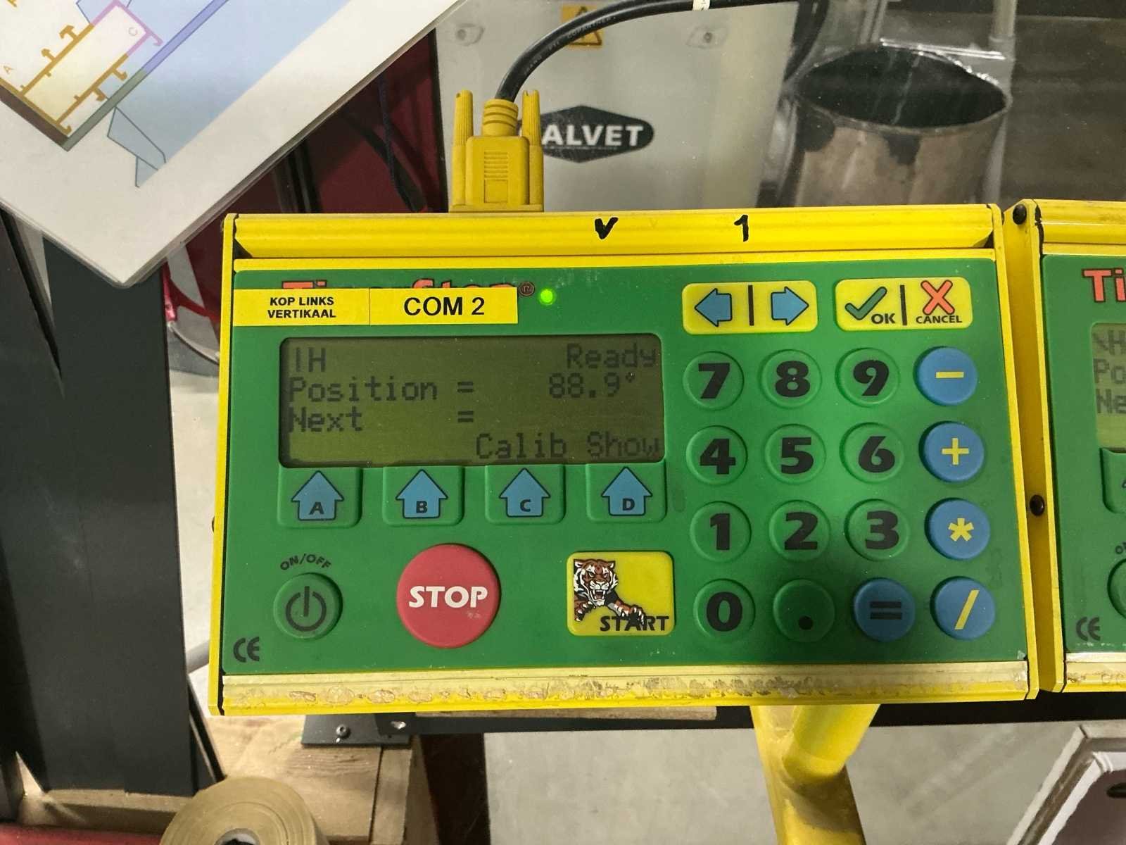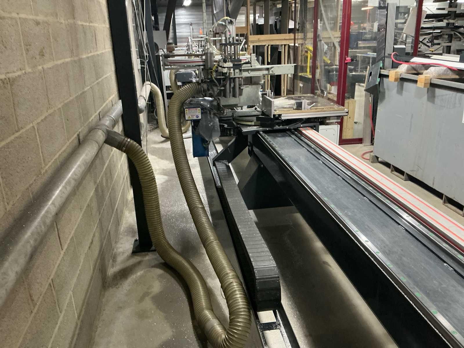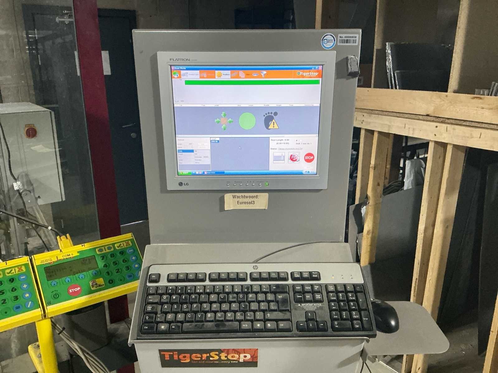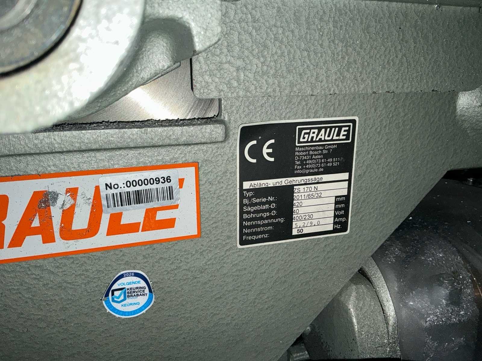 Voorzien van: 2 stuks verstek afkortzaag Graule ZS 170, voorzien van zaagblad voor aluminium, vol automatische lengte, en verstek instelling, 5 stuks Tiger stop, geheel aanstuur baar d.m.v. computer programma, digitale uitlezing, monitor met toetsenbord, software pakket voor invoer afmetingen, pneumatisch bediening, lijnlaser, maximale klembereik werkstuk 400mm, maximale uitslag zaag 300mm, maatvoering kan via programma worden ingevoerd, waarna automatische berekening verstek, afschuining en lengte's. Nee Merk: Graule Type: ZS 170N Bouwjaar: 2011 Serienummer: 2011/65/31 - 2011/65/32 Zaagblad Ø: 400mm Zaaghoogte: 170mm Verstek: true Tafel afmeting l: 6200mm Tafel afmeting b: 700mm Lengte aanvoerrollenbaan: 6200mm Lengte uitvoerrollenbaan: 6200mm Afmeting l: 6200mm Afmeting b: 1300mm Afmeting h: 1600mm Aansluiting: 400V