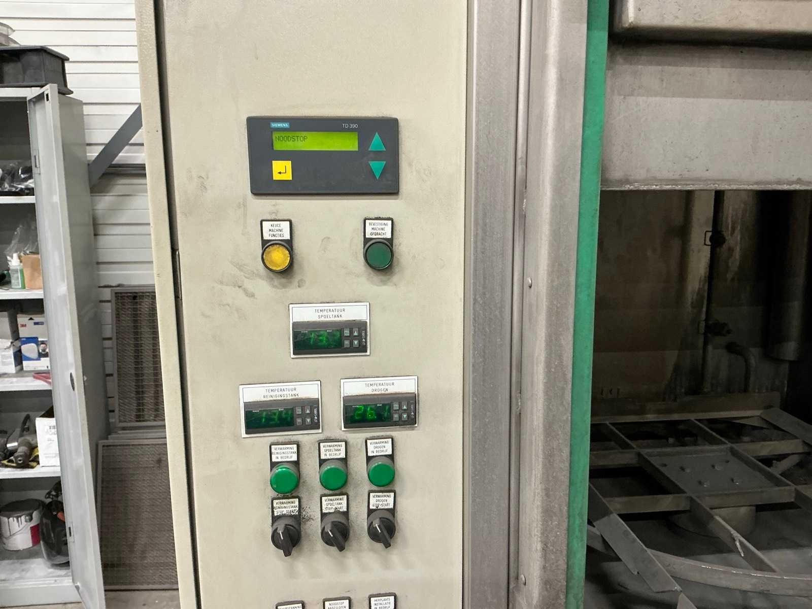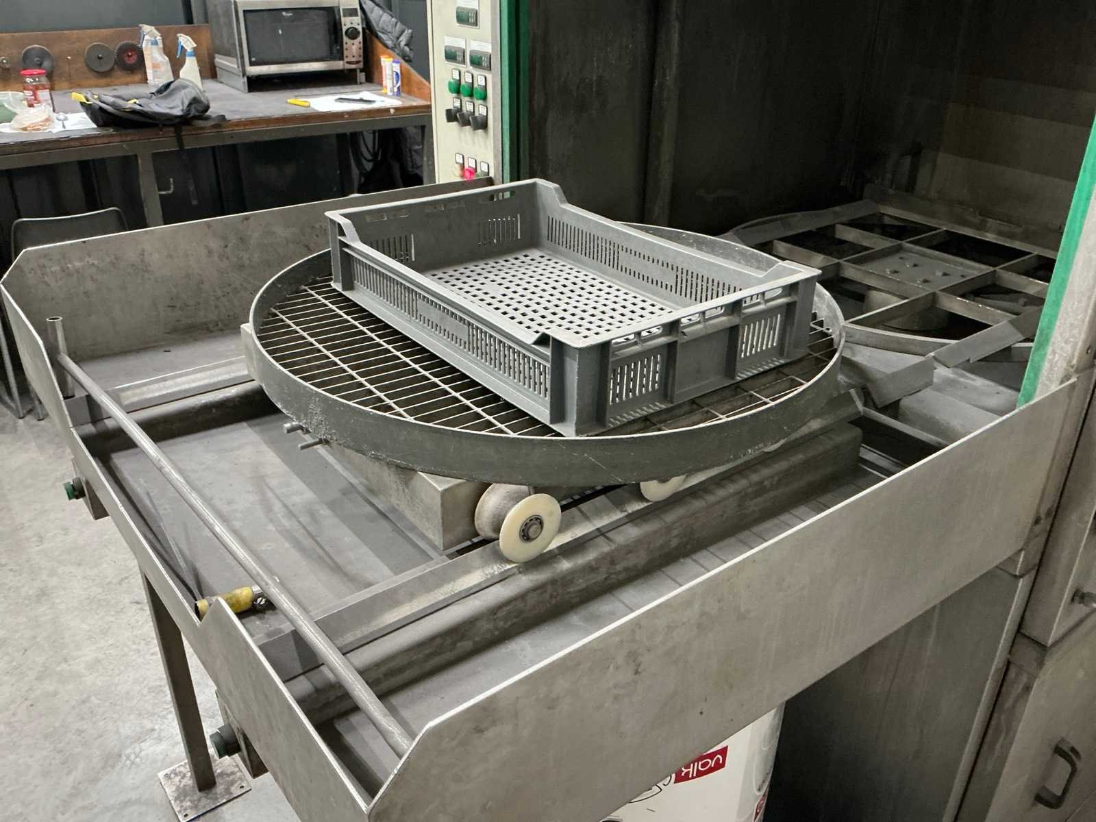 Voorzien van: industriële wasmachine met droogfunctie, om onderdelen te wassen en drogen, vaak na verspanende bewerkingen, waskorf diameter is 800mm. Nee Merk: Rösler Type: Roficab 800 WWR-Dry Bouwjaar: 1998 Serienummer: 635