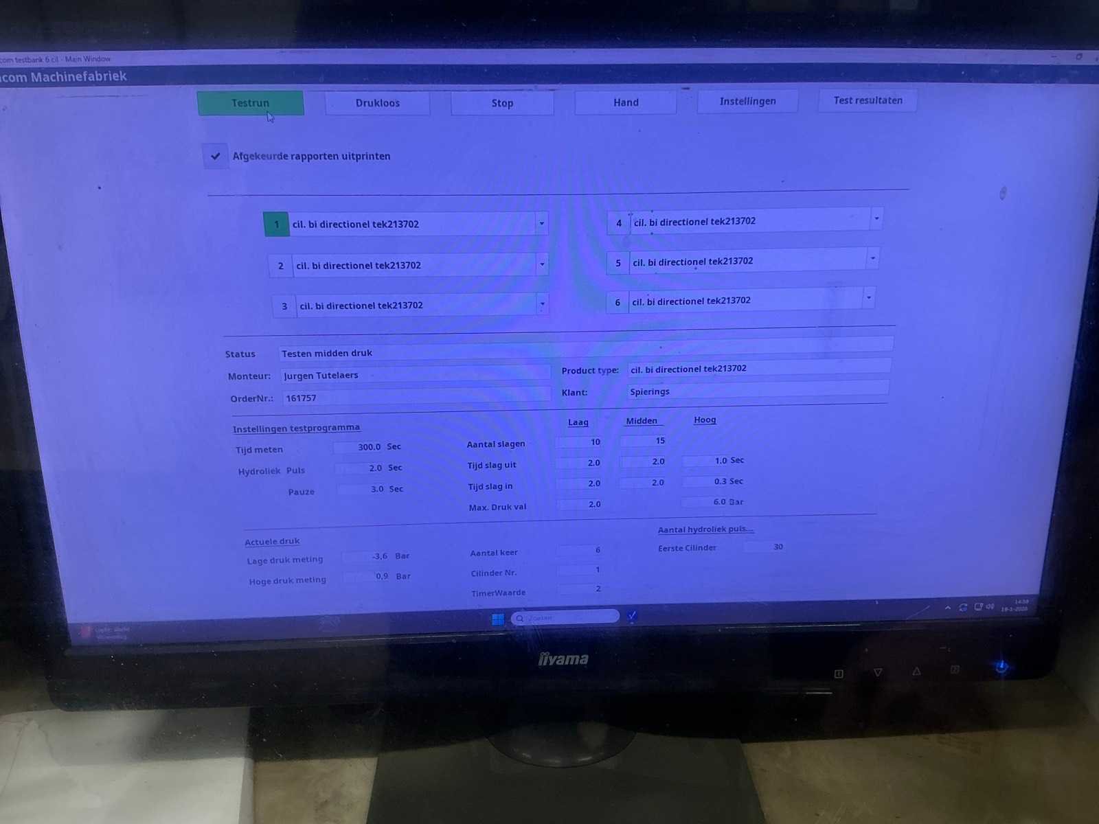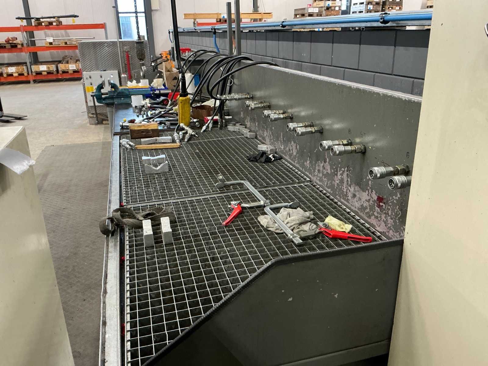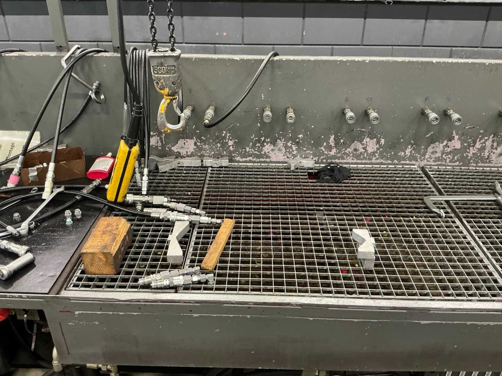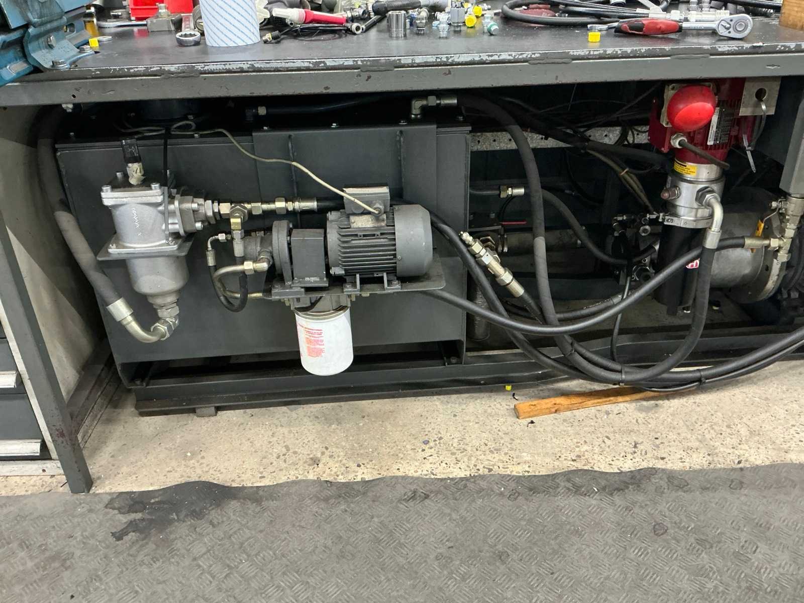 Bestaat uit: cilinder testbank, werkhoogte 950mm, tafel lengte 5000mm, breedte 1000mm, 6 stuks hydraulische aansluitingen ( snelkoppeling),pompunit, schroefbank, PC-met monitor, programma voor het testen van cilinders, 3-stappen, lage druk, midden -en hoge druk. Max.250Bar, roosters, met lekbak. Nee Merk: Hydropower Totale afmeting Breedte: 1000mm Aansluiting: 380V Werkdruk: 250bar Totale afmeting L: 5000mm Totale afmeting Hoogte: 1500mm