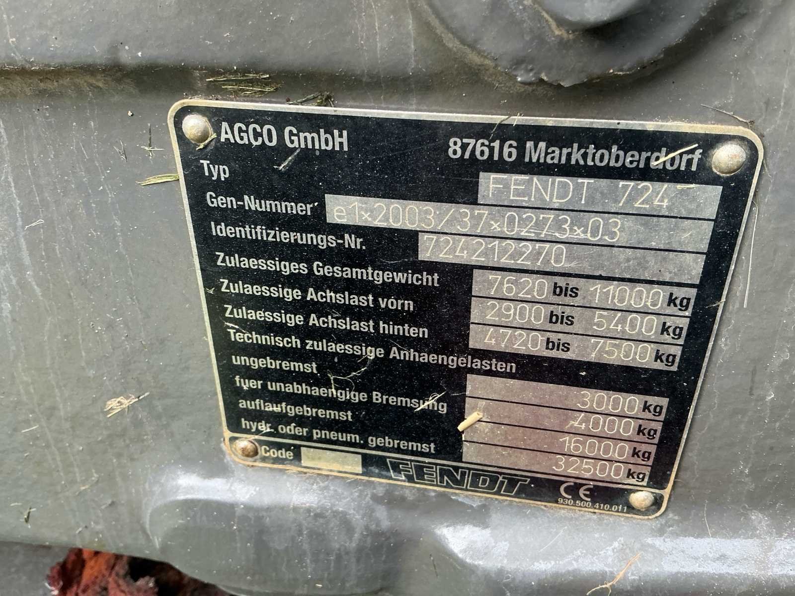 Voorzien van: front hefinrichting, 1 dubbele ventiel voor, 4 dubbele ventielen achter, 3 trekhaken, aftakas 540/540E/1000 t/min, Continental banden rondom, Deutz 6-cilinder dieselmotor van ca. 120 pk, traploze Vario-transmissie,, load-sensing hydrauliek ca. 110 l/min, eigen gewicht ca. 6.2–6.8 ton, toegestaan totaalgewicht 7.620–11.000 kg, max. geremd trekgewicht tot 32.500 kg en een urenstand van 8.690 uur. No Merk: Fendt Type: 712 Vario Bouwjaar: 2011 Serienummer: 724212270 Motorvermogen (kW): 88kW Afgelezen urenstand: 8690 Versnellingsbaktype: Vario Aftakastoerental: 1000rpm Aantal hydraulische ventielen voor: 2 Aantal hydraulische ventielen achter: 8 Bandenmaat voor: 420/85R28 Bandenmaat achter: 520/85R38 Load sensing: true Fronthefinrichting: true Cabine: true Luchtgeveerde stoel: true Totale afmeting L: 4600mm Totale afmeting Breedte: 2459mm Totale afmeting Hoogte: 2800mm Chassisnummer: 724212270 Zelf rijdend exporteren: Mogelijk