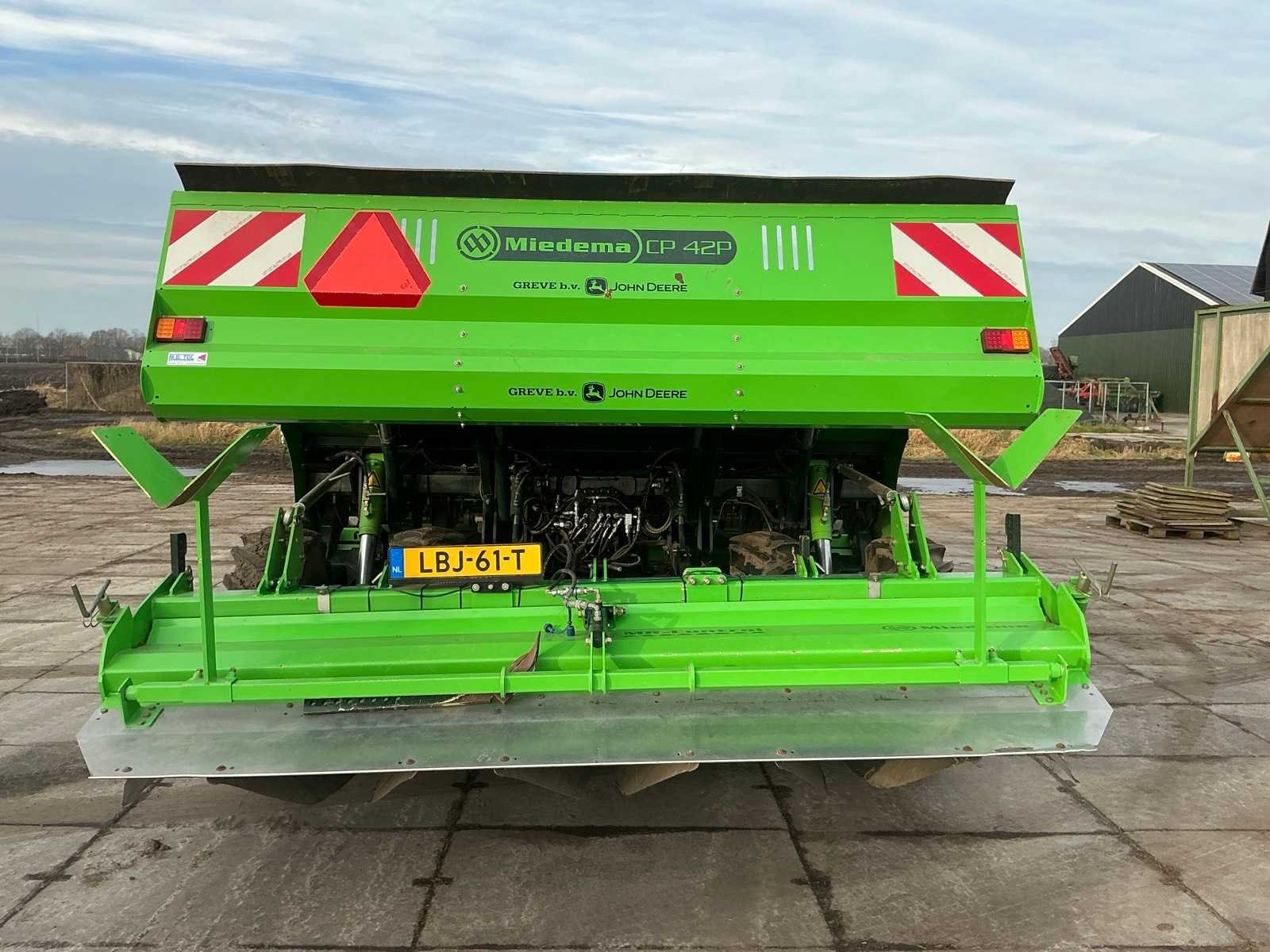 Voorzien van; HMI GPS planting comfort joystickbediening 5 Functies; Aanaardkap met 2 X MR control en spuitspoorwisser; Hydraulische kiepbunker 2.5 Ton; Gestuurde wielen; K80 Koppeling; Spuitser 3 doppen per rij 2 X 350 L tank en pomp; Zibo granulaatstrooier GPS aangestuurd; Elektrische trillers; Avr multivator frees met smartfloat control(LET OP! dit voertuig heeft een kenteken registratie, bij afhalen dient u dit ter plaatste bij een derde partij te naam te stellen of te exporteren, hier zijn extra kosten aan verbonden) Nee Merk: Miedema Type: CP42 Smartfloat Hydraulische aandrijving loadsensing Bouwjaar: 2011 Serienummer: 5011-072