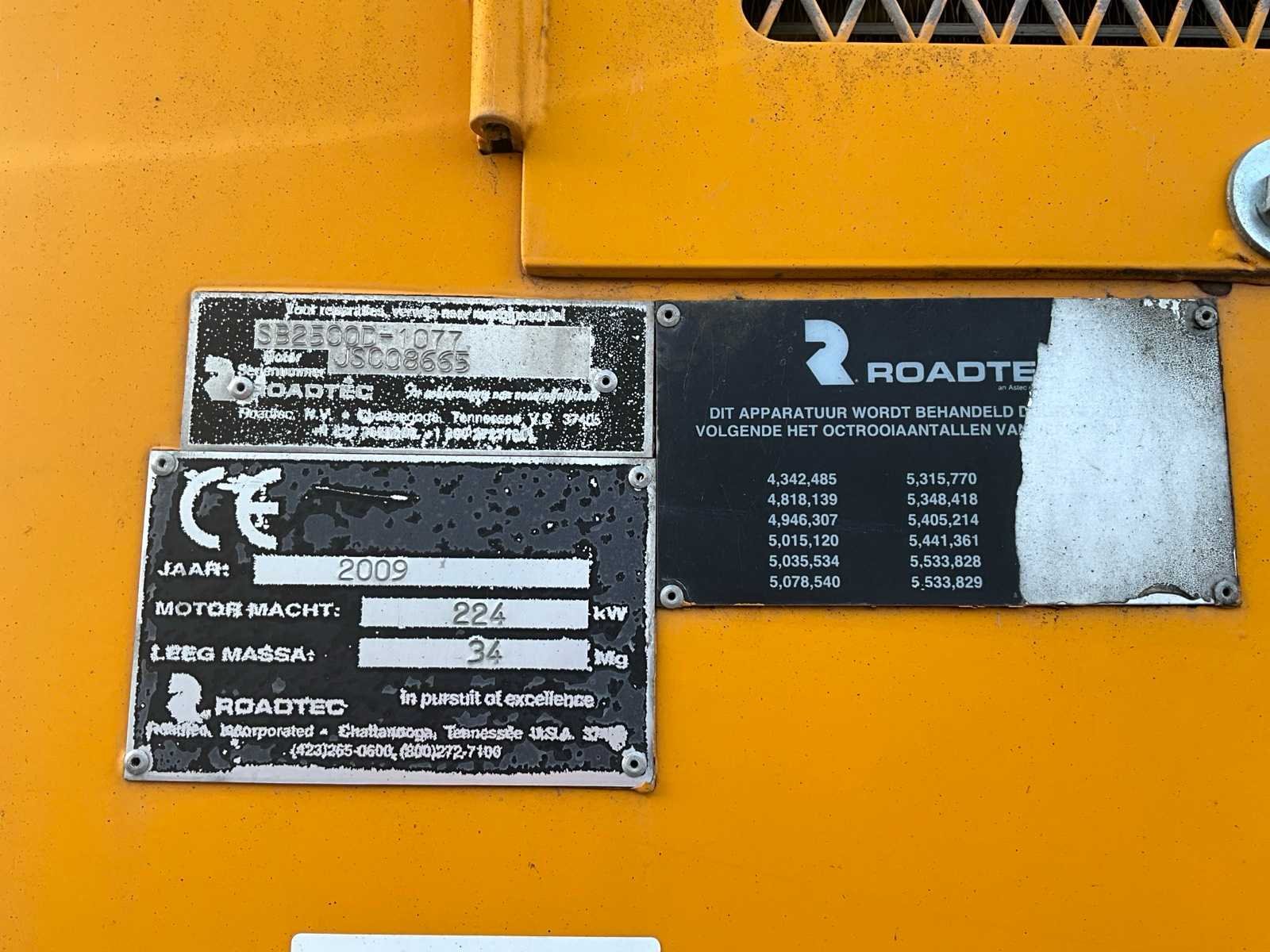 Voorzien van Caterpillar dieselmotor; vermogen 224 kW; heavy-duty banden Roadstone; hydraulische verstelbaar invoerbunker, instortbreedte 3000 mm; schuingestelde opvoerband; bunker mengsysteem; verstelbare uitgifte transportband; zowel zwenkbaar als in hoogte verstelbaar; eigen gewicht ca. 40t; incl. diverse reserve onderdelen w.o. slijtdelen, assen, (hydro)pompen Nee Merk: Roadtec Type: SB-2500D Bouwjaar: 2009 Serienummer: JSC08665 Merk motor: Caterpillar Motorvermogen (kW): 224kW Aantal cilinders: 6