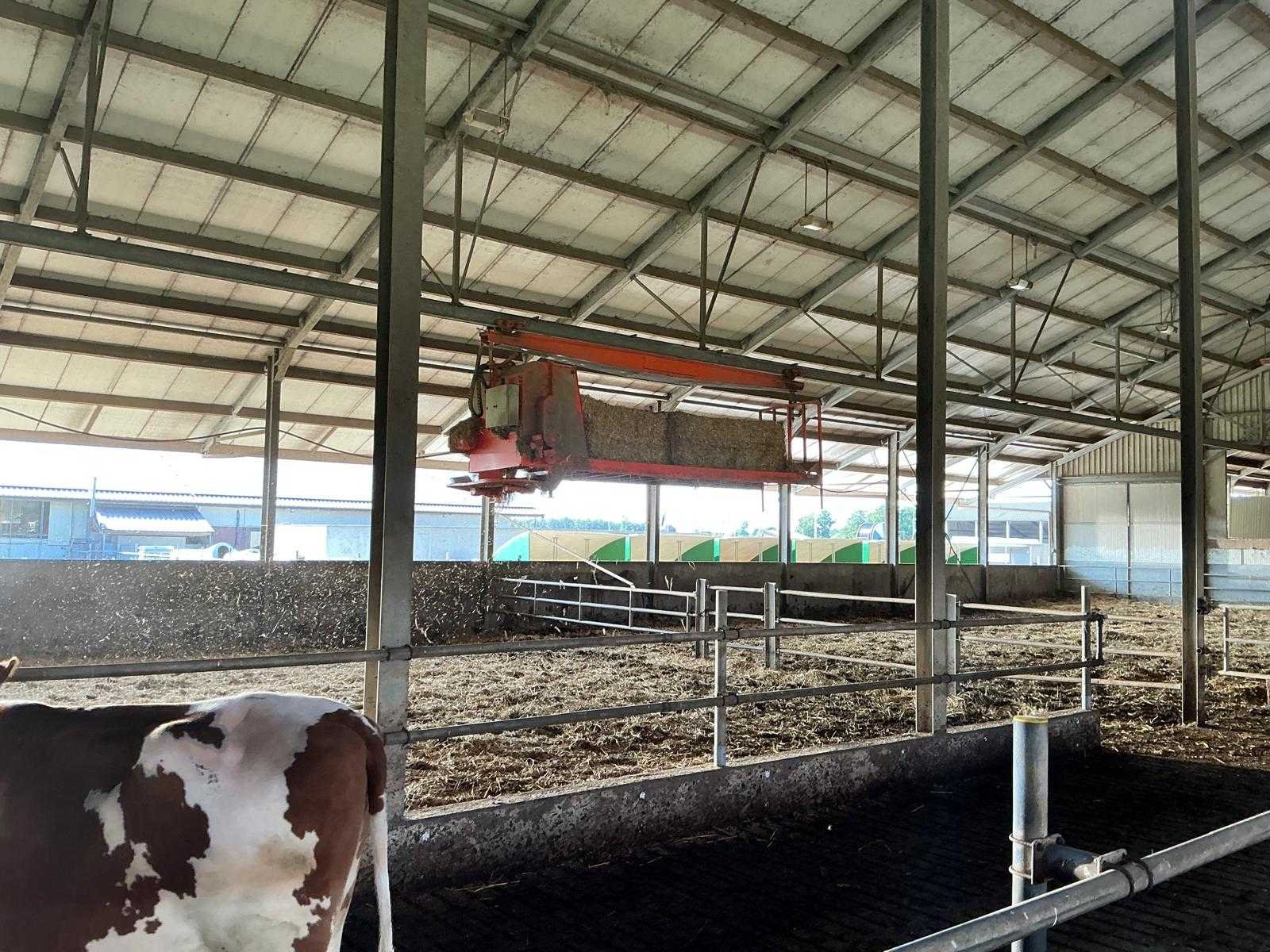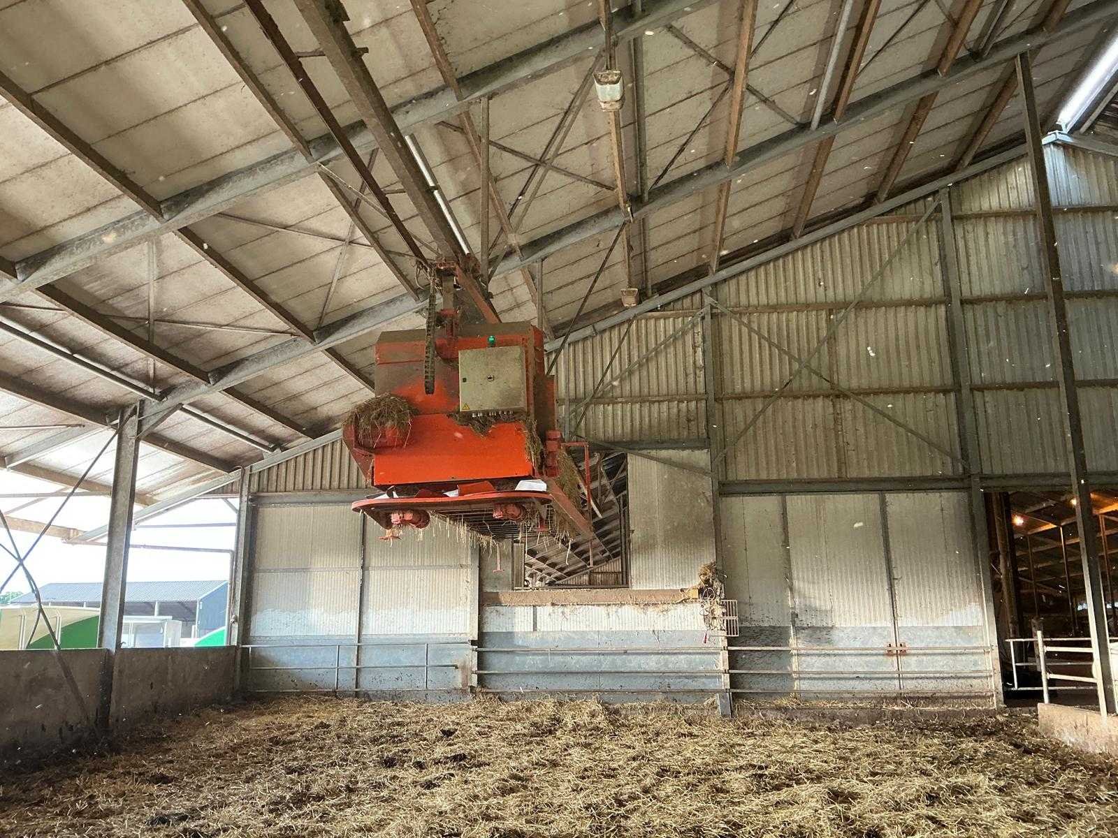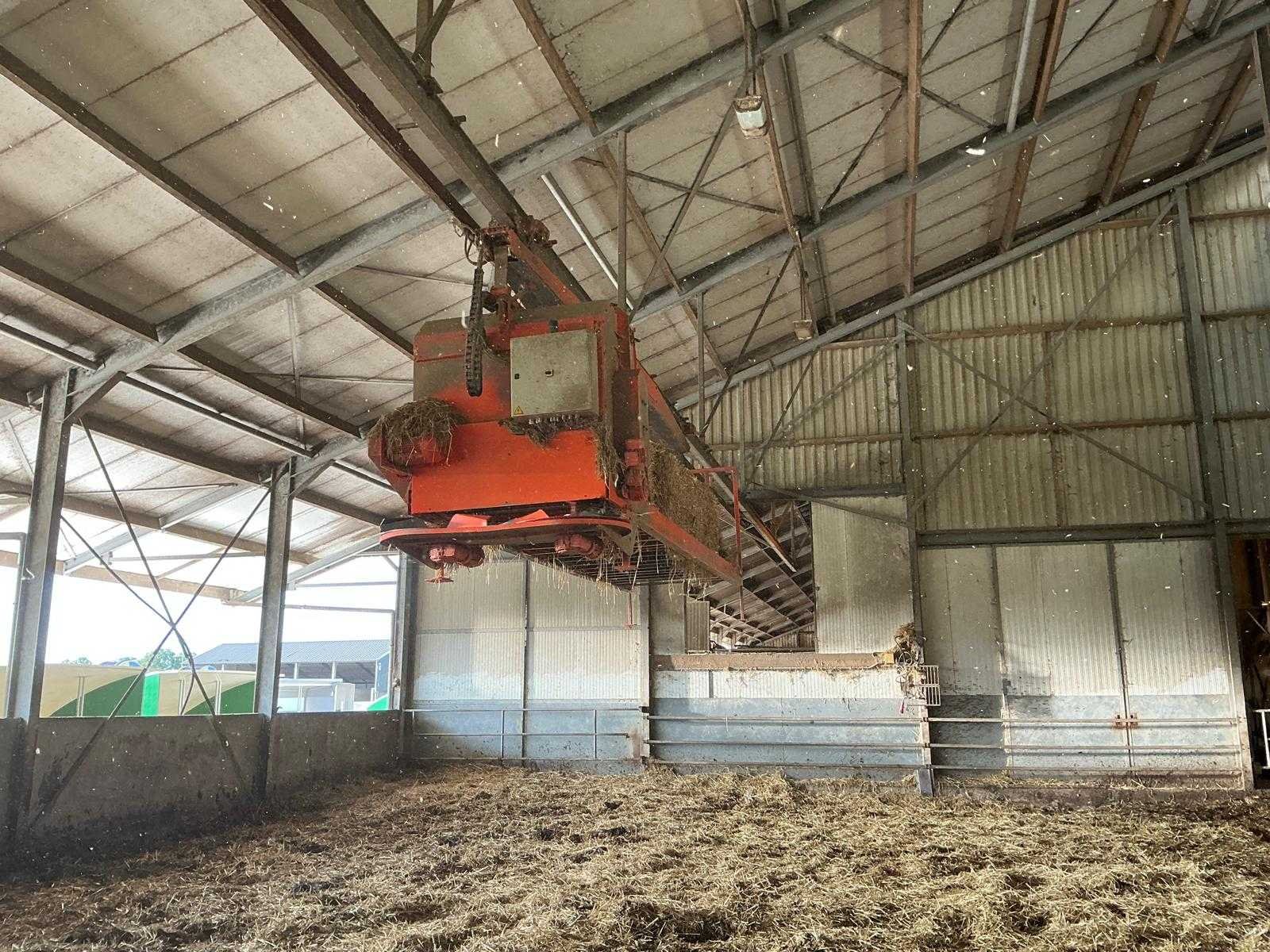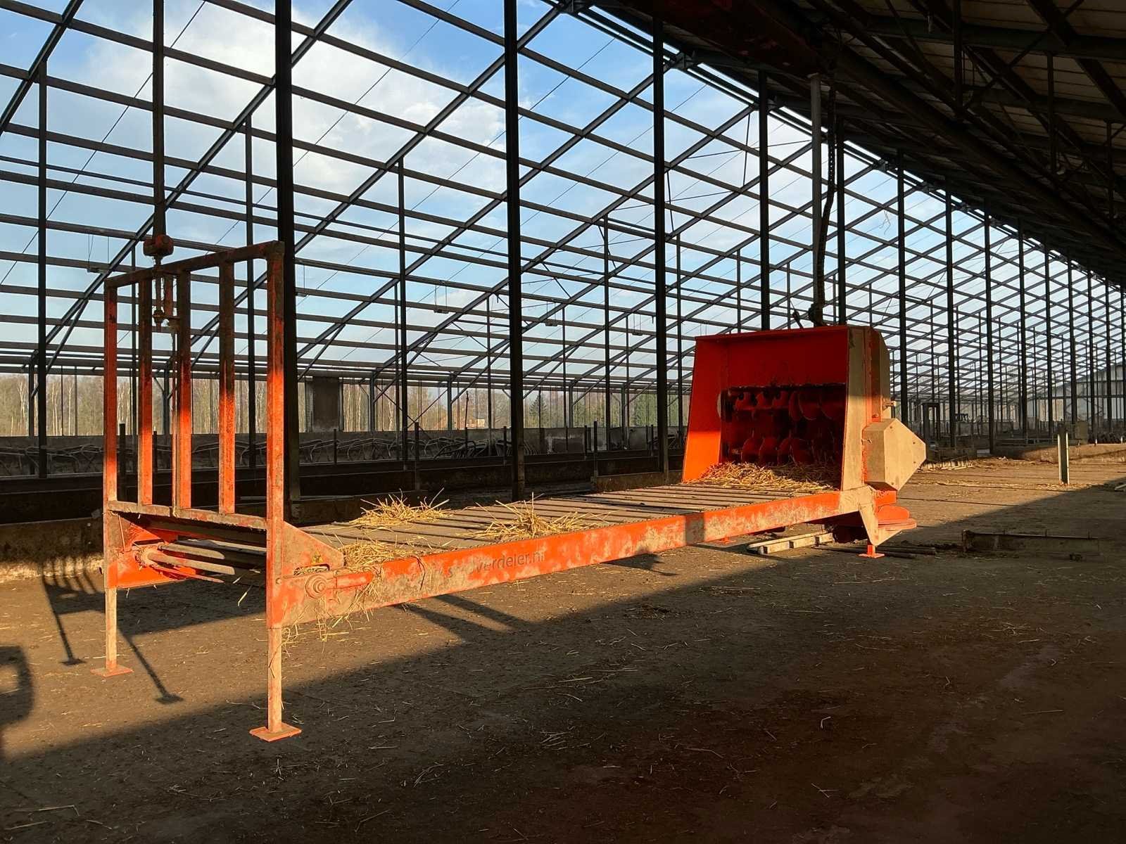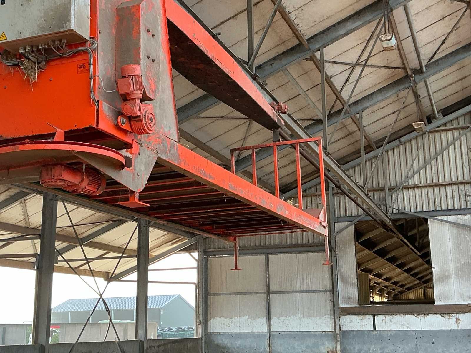 Voorzien van: Stro verdeler bouwjaar 2008, hijssysteem 2014, totaal lengte rail 160mtr, besturingssysteem, bekabeling, incl. ophangsysteem voor aan spanten, rail met sleepcontacten, traploze bediening op baalaanvoer, traploze rijsnelheid, draadloze afstandbediening, geringe geluidsproduktie, geringe stofontwikkeling, geschikt voor vierkante en ronde balen, stro verspreiding van 10 m breed. No Merk: Stroverdeler Type: BT6000 Bouwjaar: 2008 Totale afmeting L: 16000mm