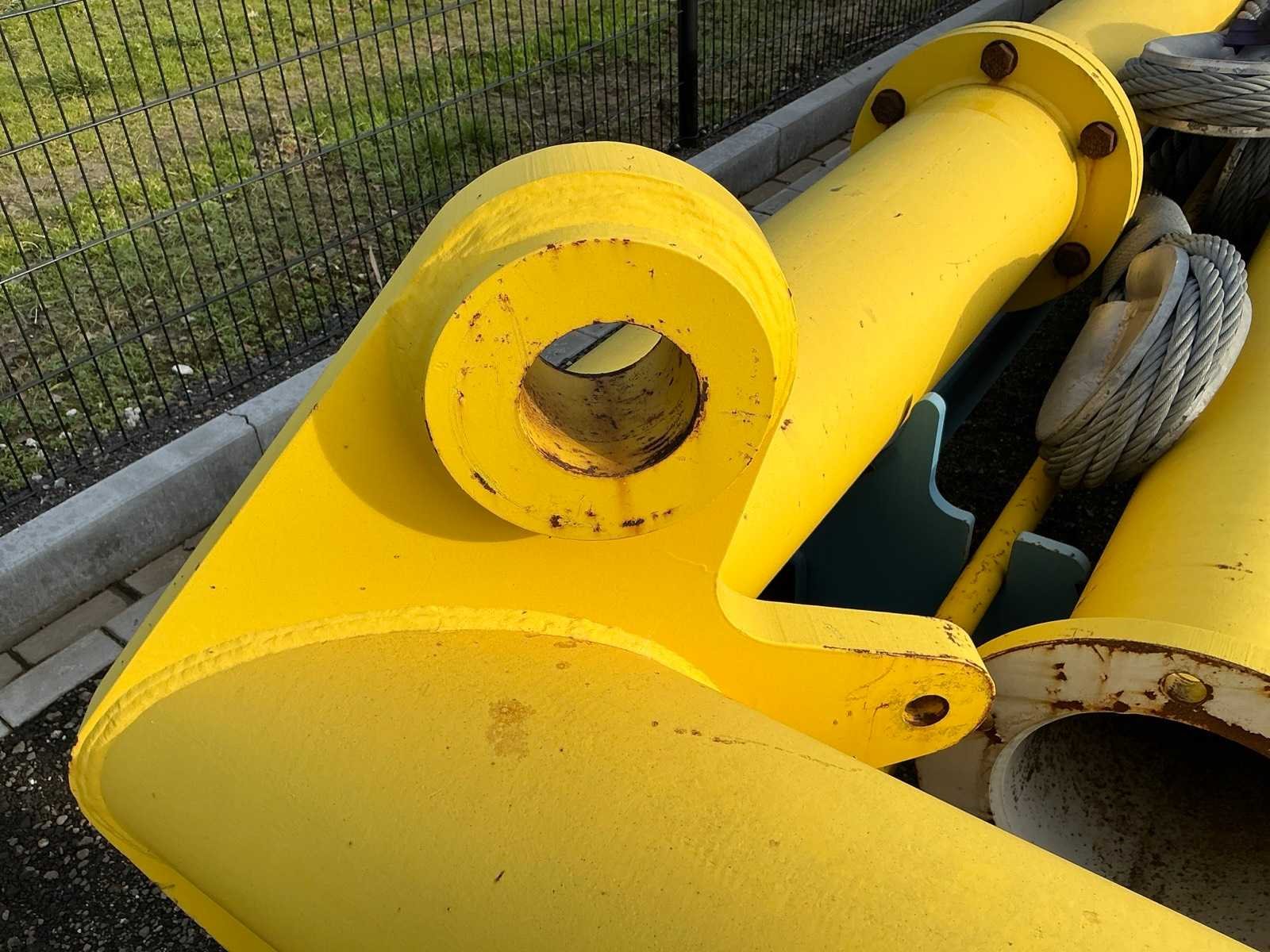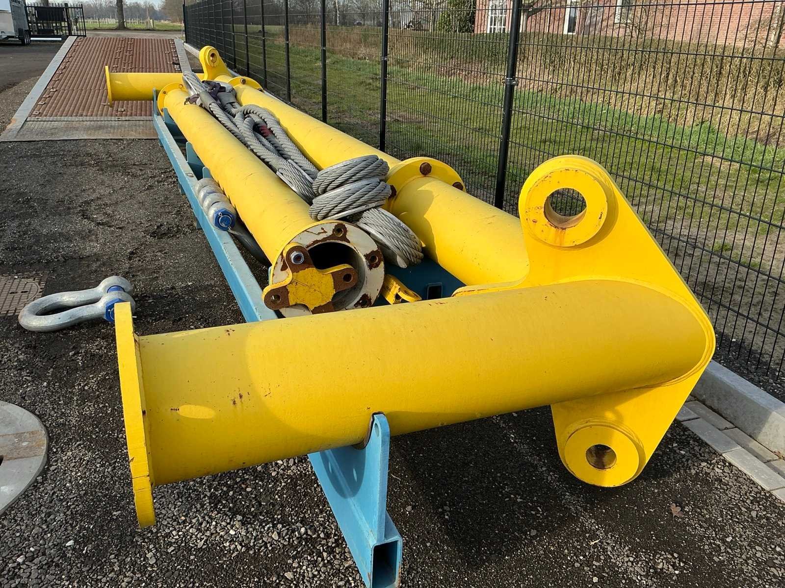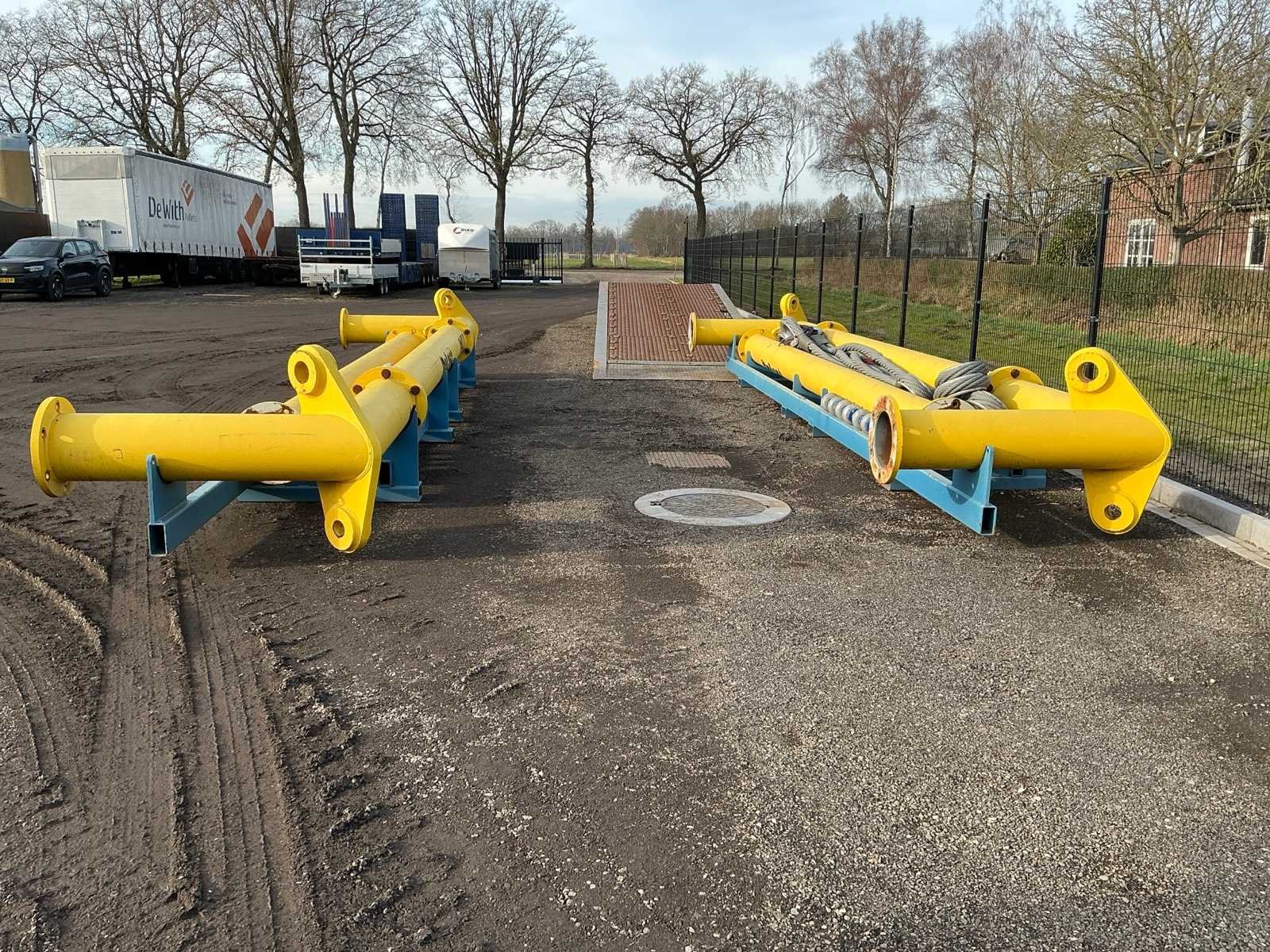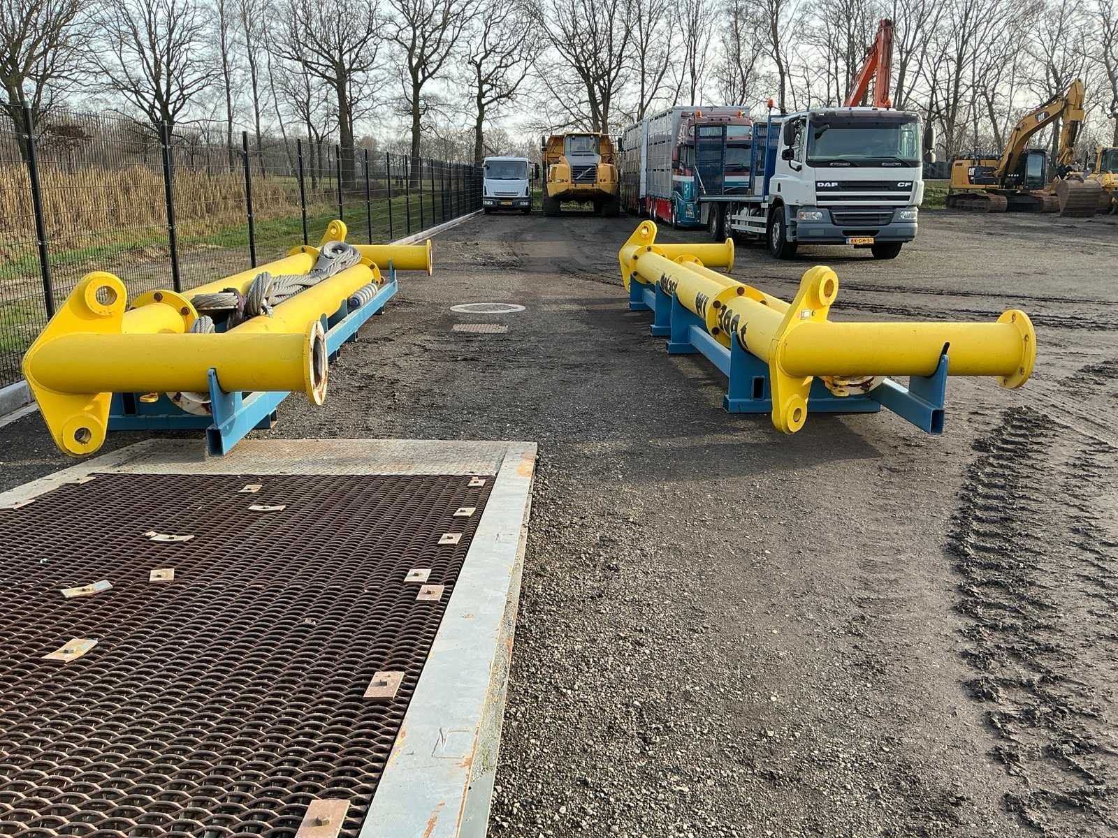 Voorzien van: 8x harpsluiting (L:52cm B:38cm), 4x harpsluiting (L:64cm B:47cm), opbergstellingen met ingang vorken, 4 hijskabels, alle bijbehorende bouten en moeren, 2x stabilisatiestang Nee Merk: DoLast Type: 300T Bouwjaar: 2019 Serienummer: 8120043 Hijsvermogen: 300000kg Totale afmeting L: 8300mm Totale afmeting Breedte: 1550mm Totale afmeting Hoogte: 2200mm