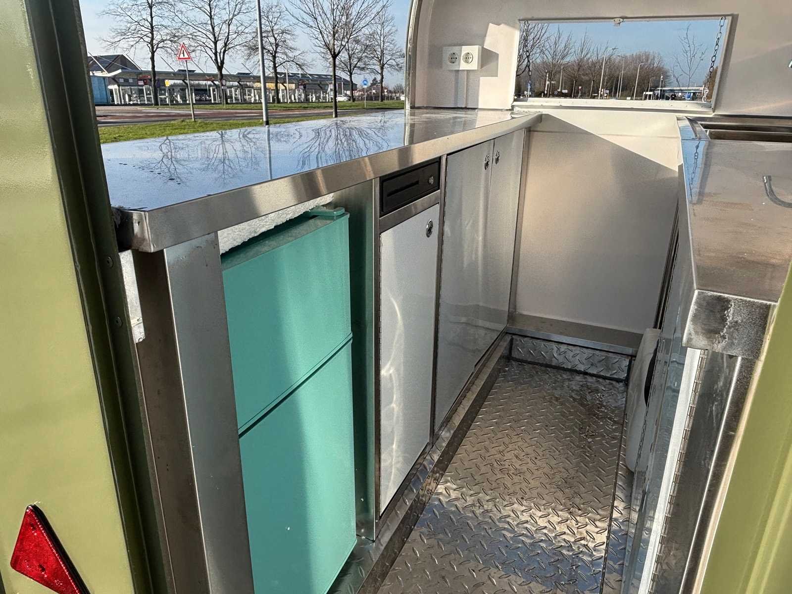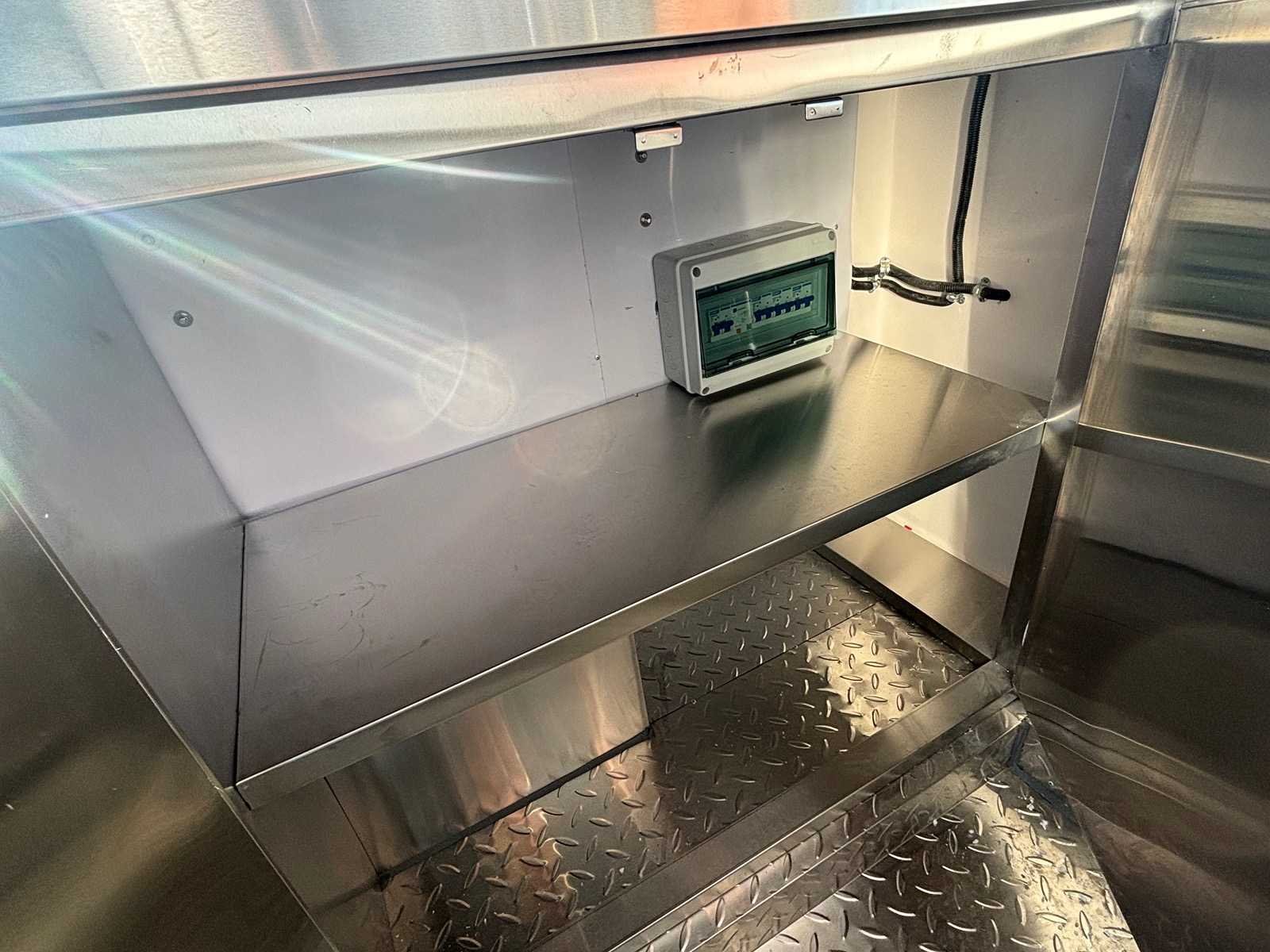 Model; PST-TN22 Lengte: 220cm Breedte: 160cm Hoogte: 240cm Gewicht: 460kg Max: 750KG Laadvermogen 290kg Dubbele wasbak met kraan en vuil/schoon watertank Aluminium antislip vloer Geaarde stopcontacten 230v Zekeringkast Ledverlichting binnen Stablilisatie poten kassalade Koelkastje met vriesvak Torsie geveerd Ral 6013 No Merk: Tune Type: E-J Bouwjaar: 2026 Chassisnummer VIN: LTNEAS8SDF3B35326 Aantal assen: 1 Laadvermogen: 290kg Eigen gewicht: 460kg Totale afmeting Lengte: 2200mm Totale afmeting Breedte: 1600mm Totale afmeting Hoogte: 2400mm