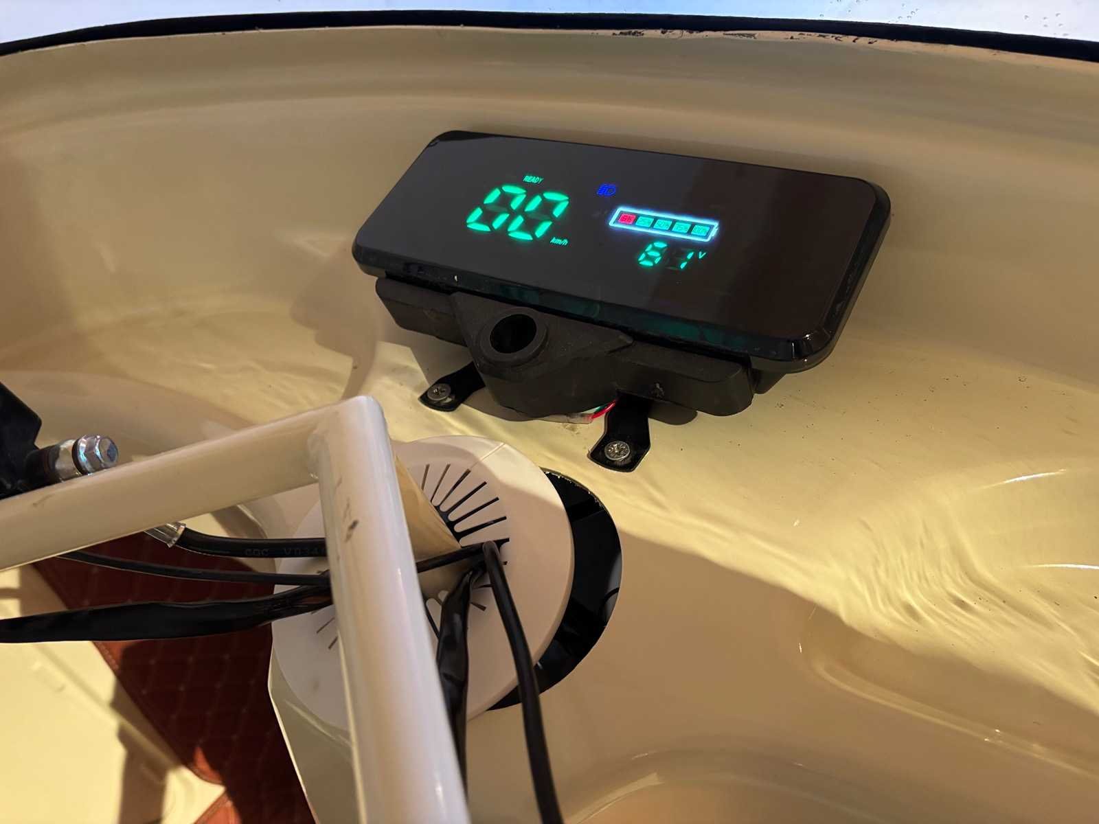 Electrisch aangedreven 45kmph (zonder kenteken) Warm/koud water aanvoer met schoon en vuilwater opslag tank 10 schep ijsbakken, klaar voor gebruik Hydraulische hefdak uitgeschoven 290cm Nee Merk: Vespa (look) Type: Ice cream Aantal assen: 1 Eigen gewicht: 550kg Totale afmeting Lengte: 3700mm Totale afmeting Breedte: 1500mm Totale afmeting Hoogte: 1900mm