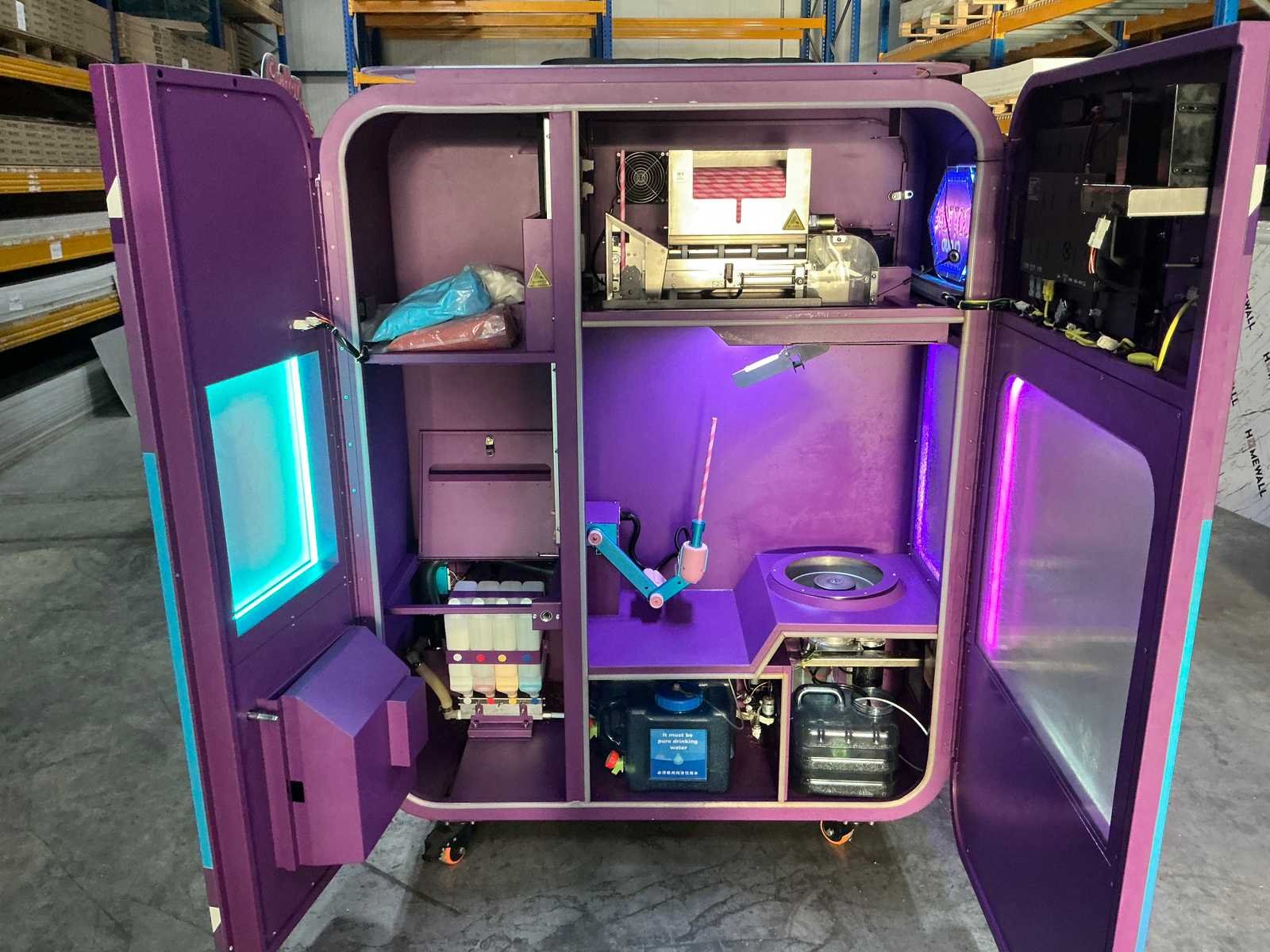 Betreft: Compleet suikerspinconcept (3 machines + alles inbegrepen) Deze kavel bestaat uit een volledig operationeel suikerspinconcept, klaar voor directe commerciële inzet. Inhoud van de kavel • ✅ 3 professionele suikerspinmachines • ✅ Nayax pinapparaat op elke machine – alleen pinbetalingen, volledig automatisch, eenvoudig in te stellen op eigen bankrekening • ✅ Domeinnaam: www.cottoncloud.nl • ✅ Bijbehorend e-mailadres. • ✅ Contactgegevens van Gamebox Nederland, waar de machines langere tijd hebben gestaan op meerdere locaties via winstdeling • ✅ Binnenkomende aanvragen via de website voor events, openingen en feesten • ✅ Materialen- en leverancier contacten Uniek voordeel – 24/7 technische support Je krijgt toegang tot een exclusieve 24/7 support-groepsapp met 12 professionals die de machines hebben ontwikkeld en gebouwd. De app vertaalt automatisch naar het Nederlands, waardoor taal geen barrière vormt. Technische problemen, instellingen, storingen en nieuwe onderdelen kunnen direct worden opgelost of geleverd. Inclusief voorraad & onderdelen • 🍭 ± 20 kg suikermix • 🧻 ± 8.000 vochtige doekjes met logo • 🥢 ± 30.000 stokjes • ⚙️ Reserveonderdelen, waaronder motoren, slangen en buizen Samengevat: U koopt niet alleen machines, maar een compleet bedrijfsklaar concept inclusief werkende betaaloplossing, supportstructuur, bestaande samenwerkingen, voorraad en onderdelen. Nee Merk: Wider Model: WM980 Kleur: Paars Lengte: 130cm Breedte: 65cm Hoogte: 180cm