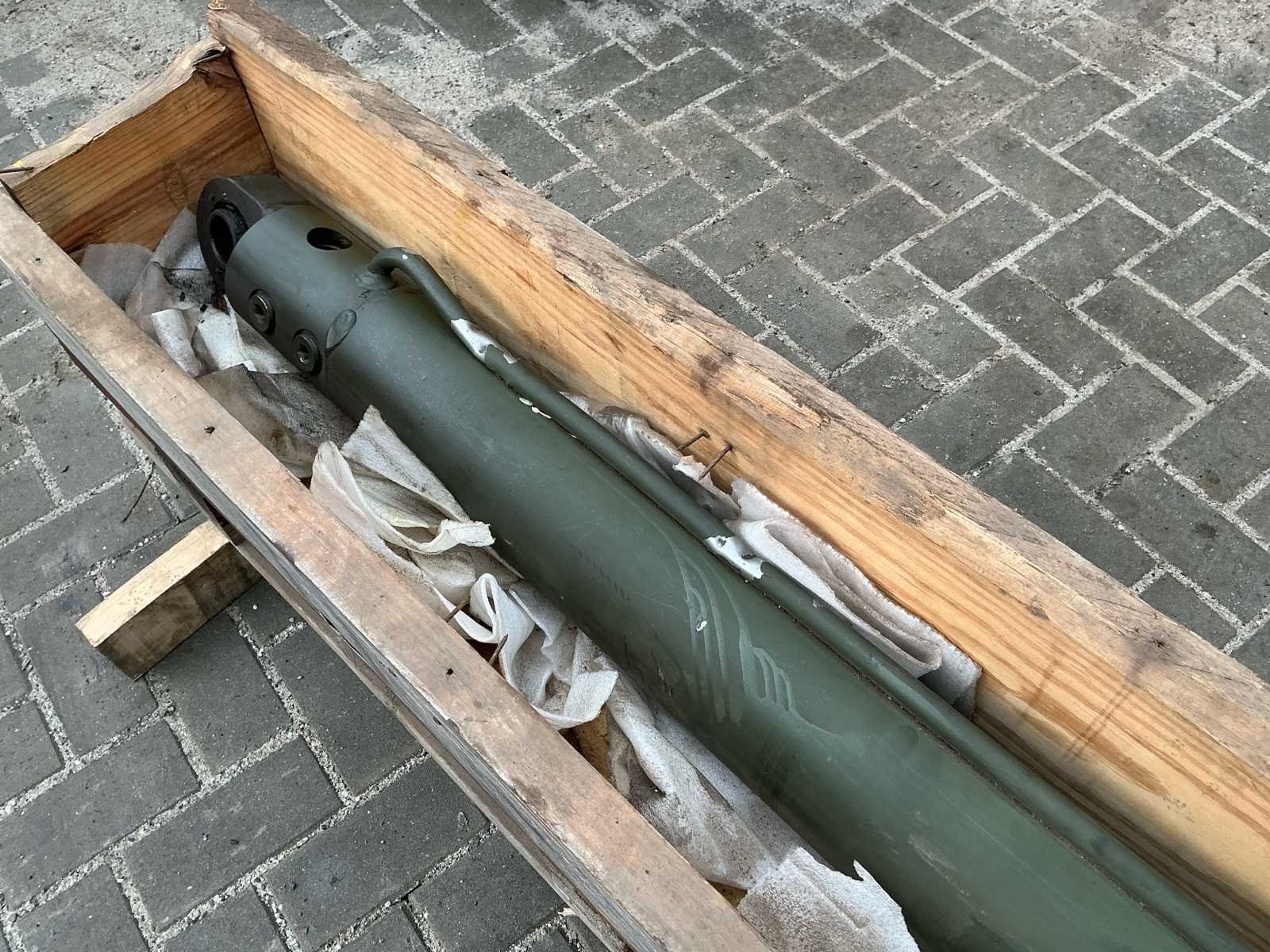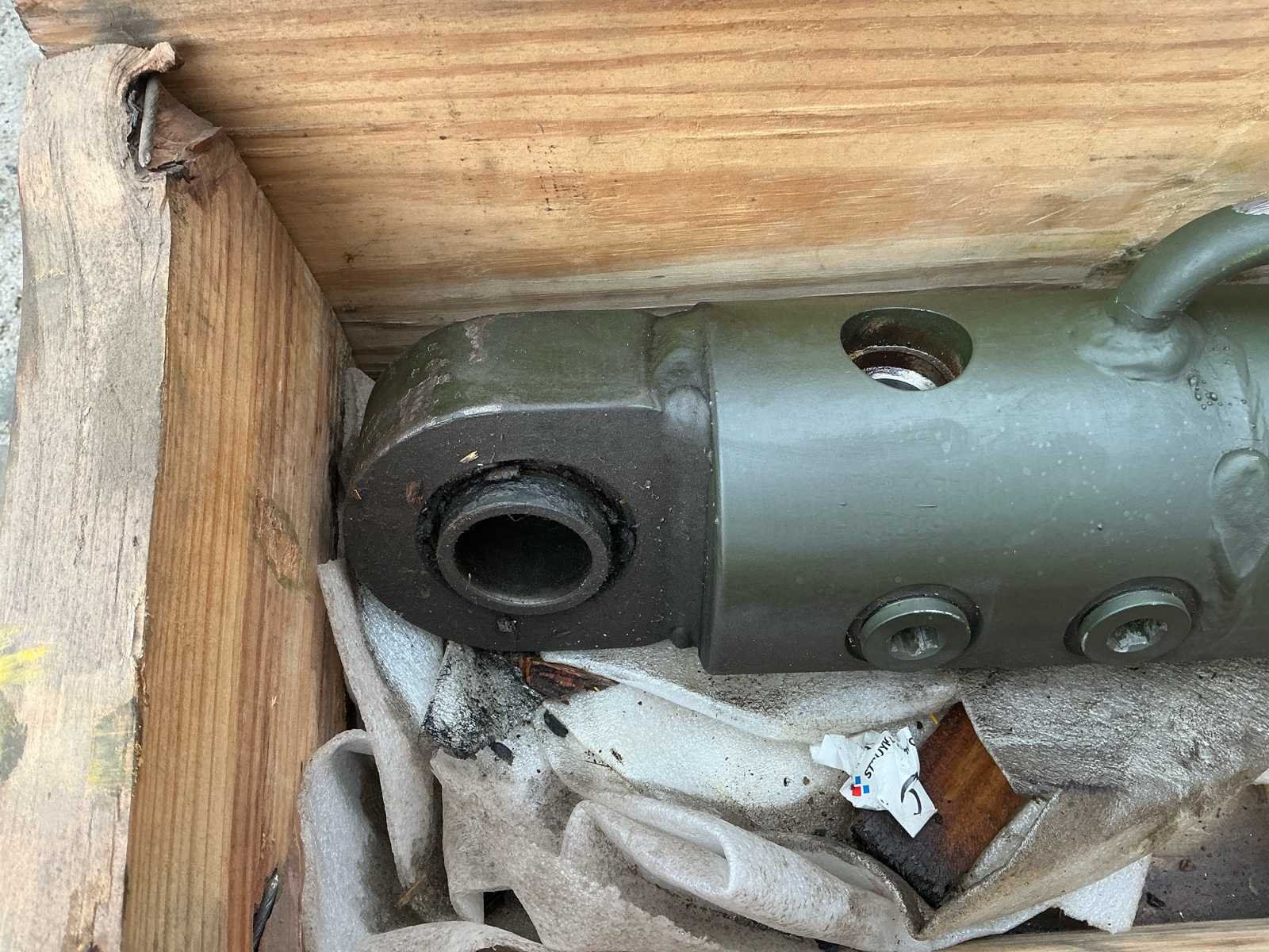 Voorzien van: slag ca. 1500mm, cilinderkop oog pen 45mm, bodemzijde pen 45mm, stangmaat 70mm, totaal lengte 2050, diameter buis ca. 120mm, ex.US-army. Nee Merk: Hydrauliek cilinder Totale afmeting Breedte: 2050mm Totale afmeting L: 2050mm
