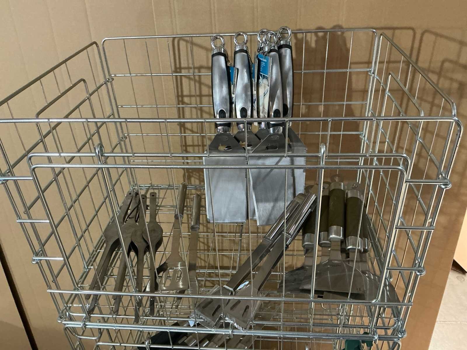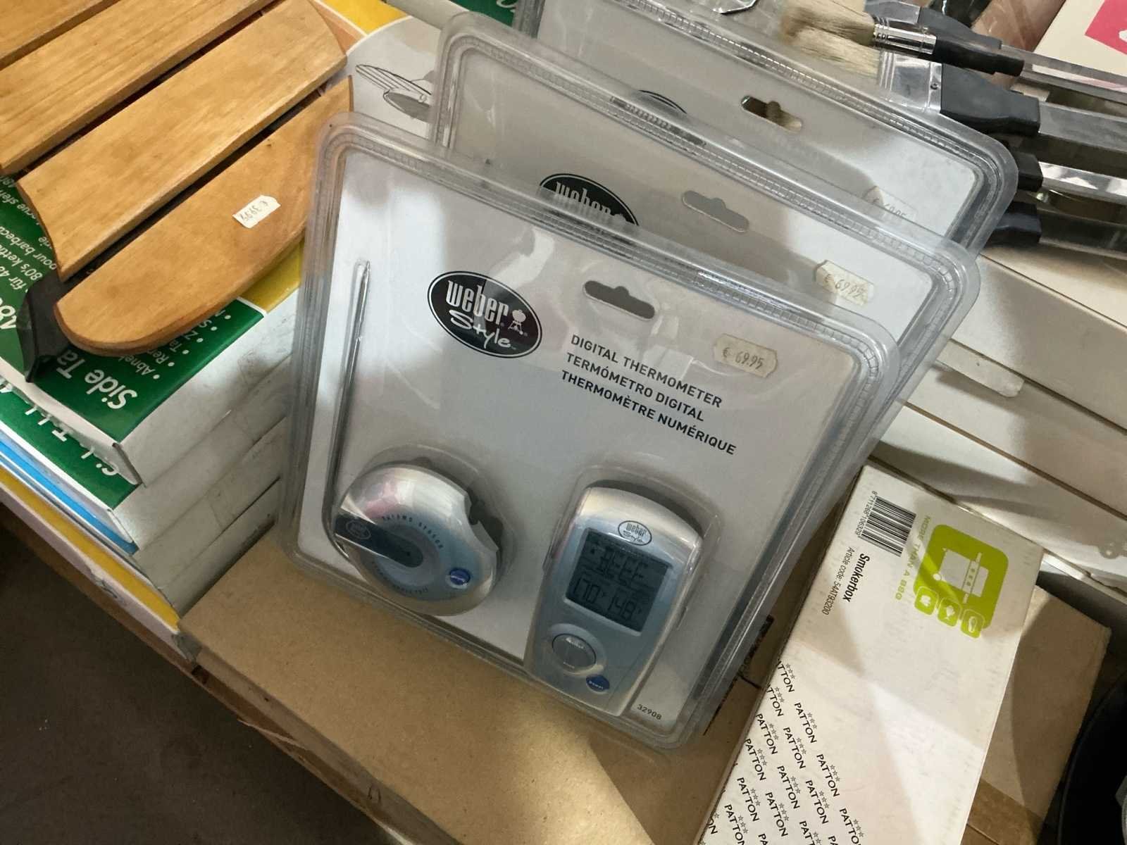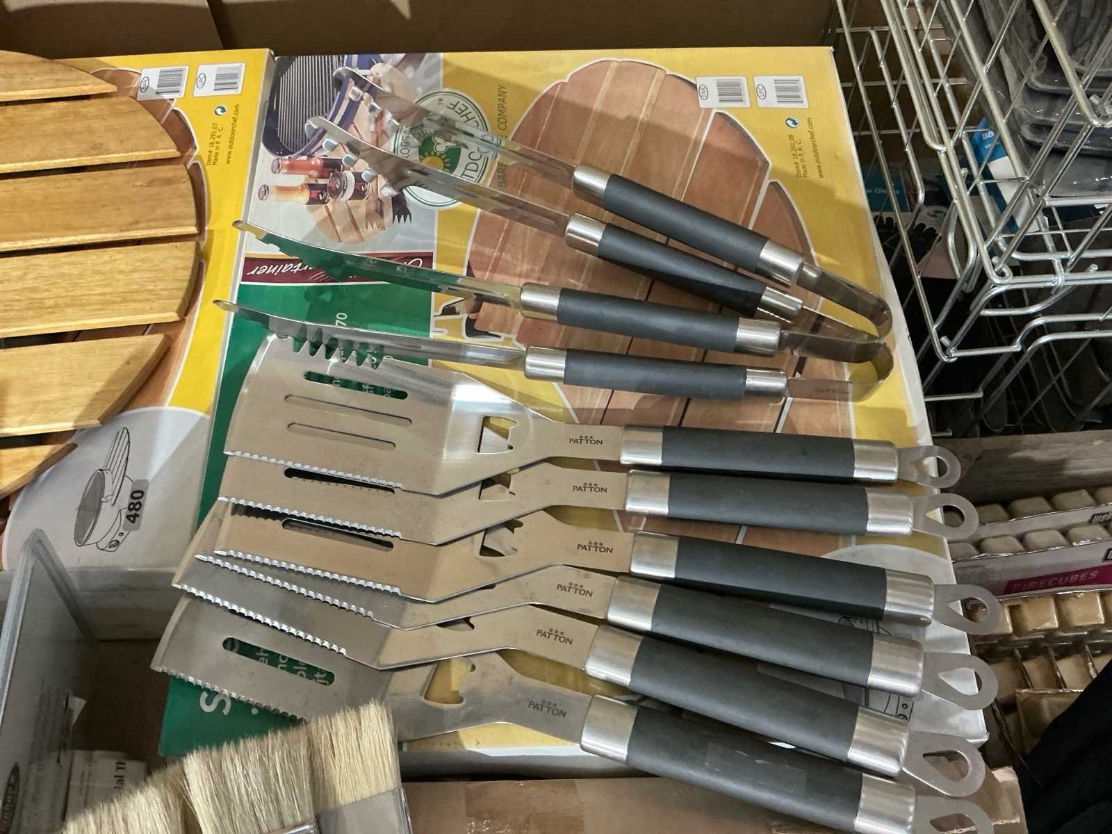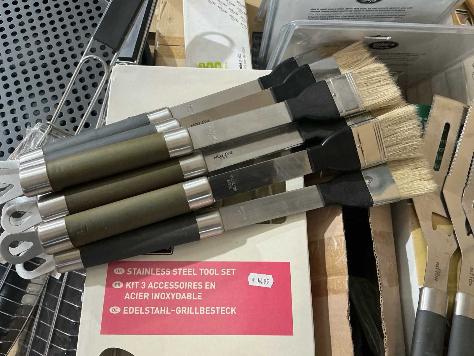 Bestaat uit: 3 pallets met barbecue benodigdheden, Weber briketten starter 7 stuks, Weber vinyl cover 4 stuks, Weber magneet messenhiuder, 2x gourmetset, Patton wok7 stuks, Patton connectie set 4x, Patton borstels, BBQ tangen, Patton spatel 6x, 9 side table, BBQ short 2x, kist aanmaak blokjes, recepten boeken, Patton fish-grill,Weber digitale thermometer, 2 stuks wok set, Weber BBQ, BBQ handschoenen, Nee Merk: Weber Model: Diversen