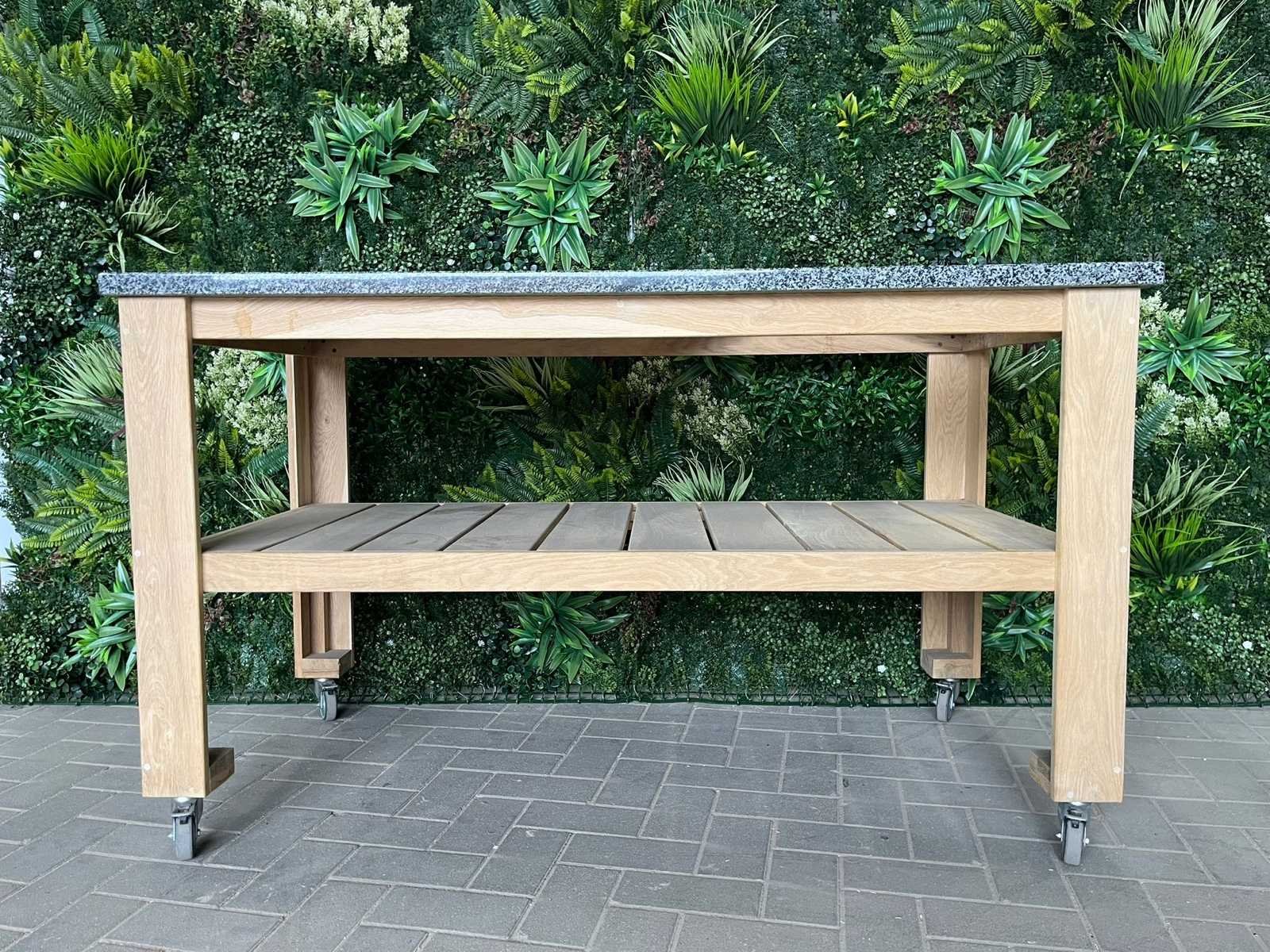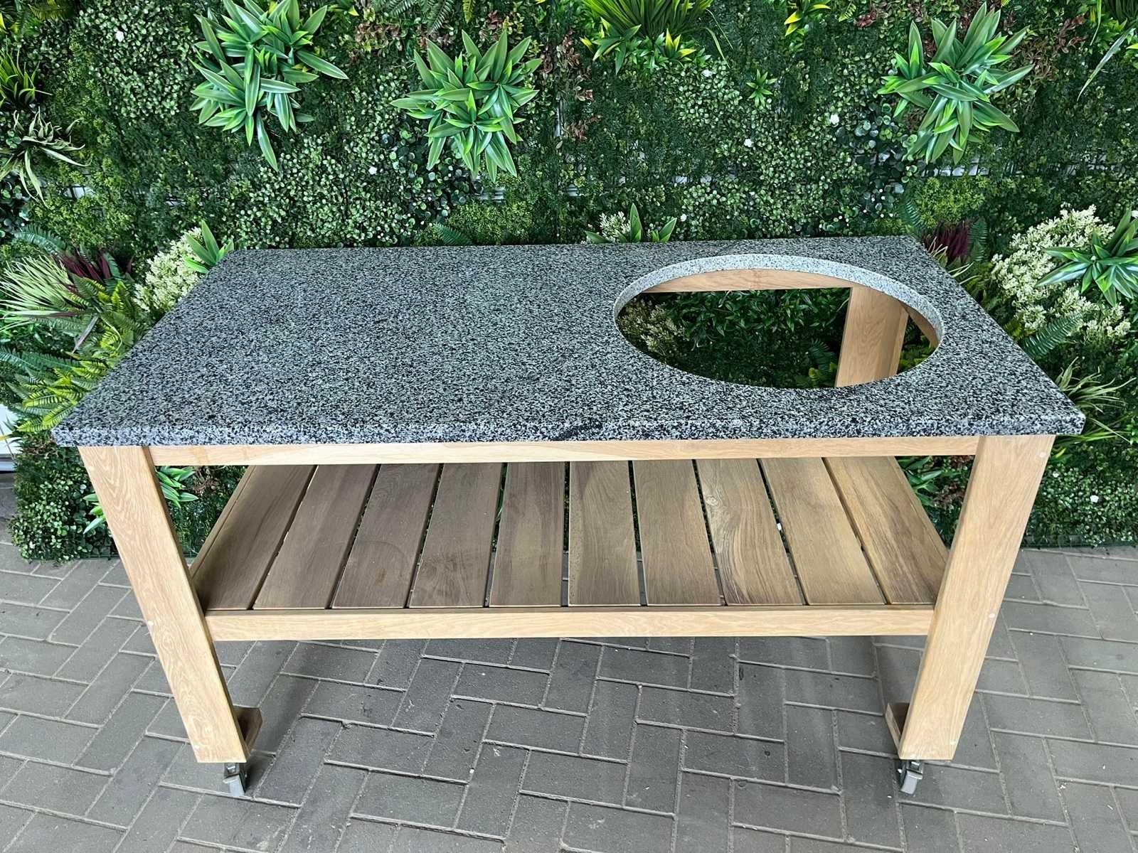 No Product type: Buiten keuken bedoeld I.c.m. Green Egg BBQ Lengte: 150cm Breedte: 76cm Hoogte: 87cm Materiaal: Hout