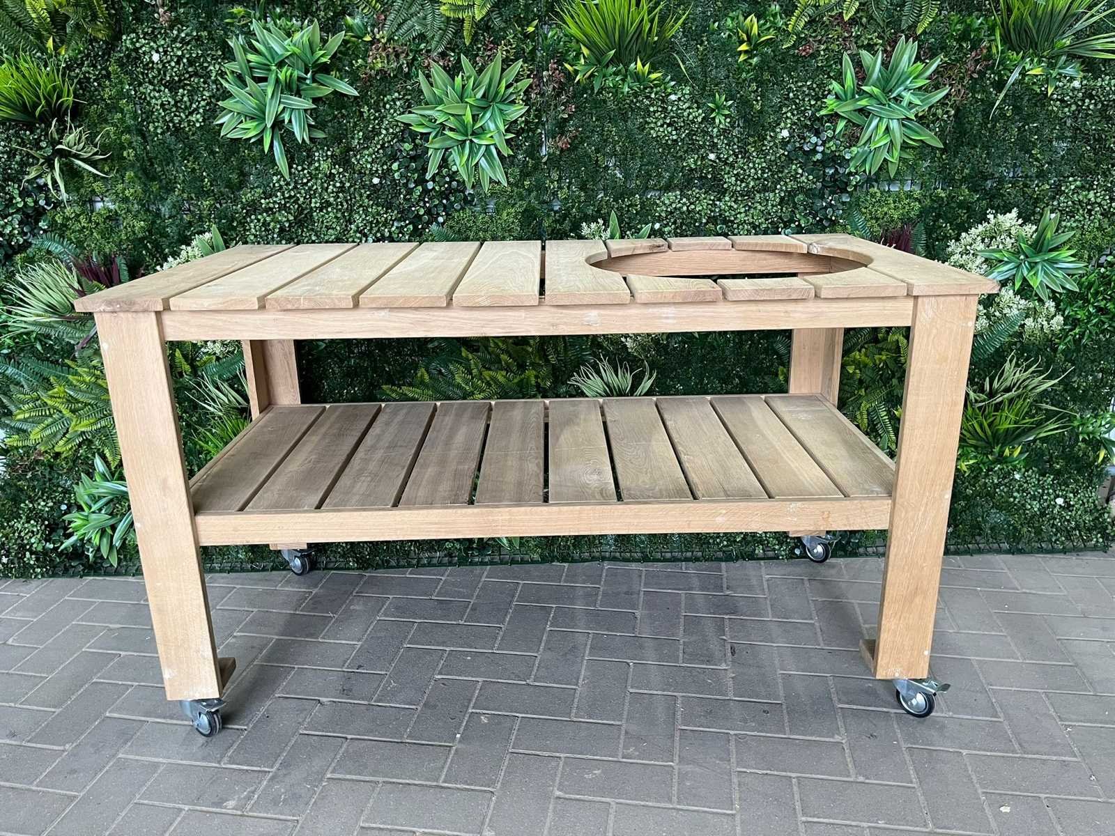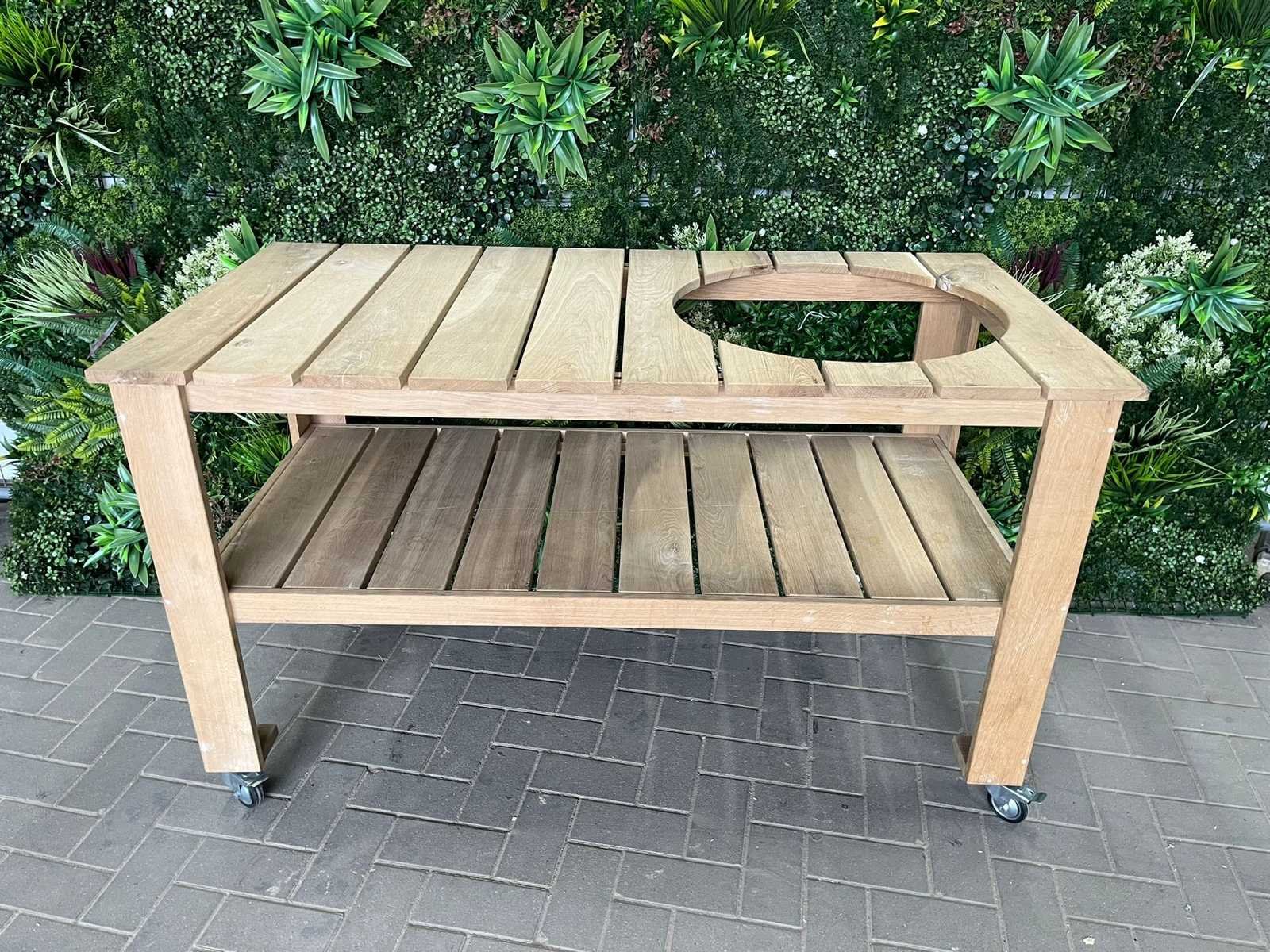 No Product type: Buiten keuken bedoeld I.c.m. Green Egg BBQ Lengte: 150cm Breedte: 76cm Hoogte: 87cm Materiaal: Hout
