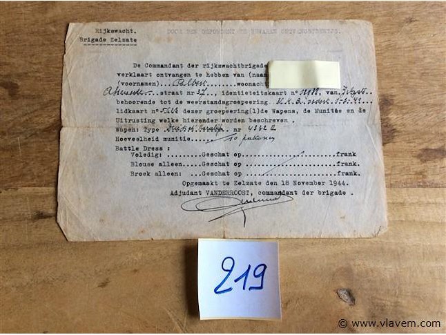 Uittreksel inlevering wapen 1944.
