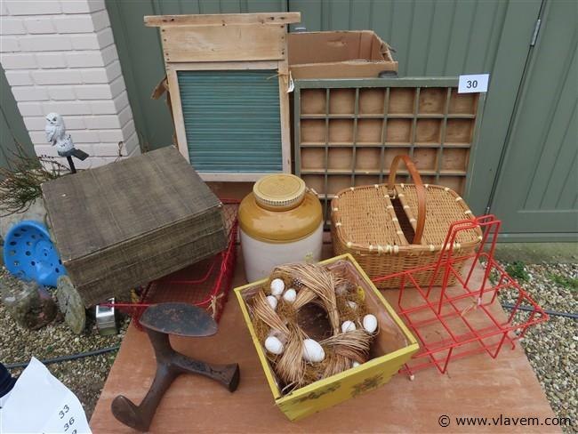 Mandjes, koffers, opude schoenleest enz…