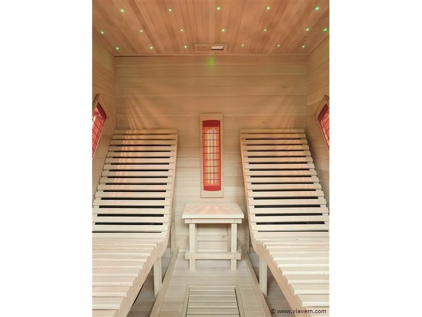 Aantal: 1 Merk: Vonato Productnaam: Sauna Type: SMI-B202 Model: Infraroodkachel - rechthoekig - Tweepersoons Kachel: Infrarood 6 kW Afmeting: 1800x1800x1900mm Verwarming: Infraroodverwarming - Verwarmde giethars platen die evenredig warmte afgeven binnen de sauna Voorzien van: Helder veiligheidsglas (8mm) - Ventilatierooster - Control Panel met USB aansluiting en Bluetooth - Speakers - 220V - Plafondverlichting - Houten deurhendel - 2 ligbedden Conditie: Nieuw Ter waarde van: € 4.795,00