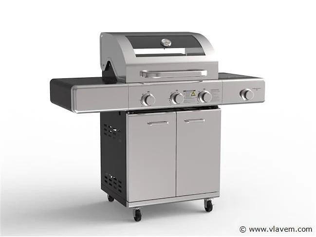 Aantal: 1 Merk: Vonato Productnaam: Gasbarbecue Type: SYDNEY-3B Model: RVS Gasbarbecue - 3 branders met zijbrander Kleur: Zilverkleurig Materiaal: RVS BBQ, Gietijzeren rooster, Gehard glas in deksel Afmetingen: 1363x625x1204mm Grilloppervlak: 605x485 mm. Voorzien van: 3 Hoofdbranders en 1 zijbrander - Gietijzeren rooster - Gietijzeren kookplaat - Elektrische ontsteking - Deksel voorzien van thermometer en glazen venster - Wieltjes waarvan 2 met rem - Twee deuren. Conditie: Nieuw Ter waarde van: € 1.195,-