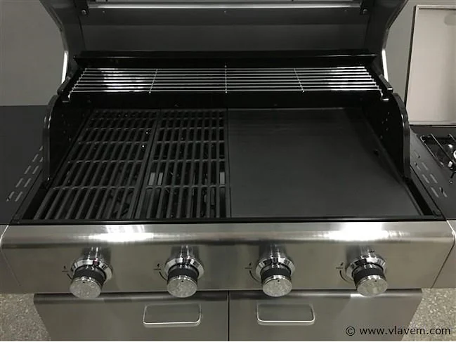 Aantal: 1 Merk: Vonato Productnaam: Gasbarbecue Type: SYDNEY-4B Model: RVS Gasbarbecue - 4 branders met zijbrander Kleur: Zilverkleurig Materiaal: RVS BBQ, Gietijzeren rooster, Gehard glas in deksel Afmetingen: 1563x625x1204mm Grilloppervlak: 805x485mm Voorzien van: 4 Hoofdbranders en 1 zijbrander - Gietijzeren rooster - Gietijzeren kookplaat - Elektrische ontsteking - Deksel voorzien van thermometer en glazen venster - Wieltjes waarvan 2 met rem - Twee deuren. Conditie: Nieuw Ter waarde van: € 1.295,-