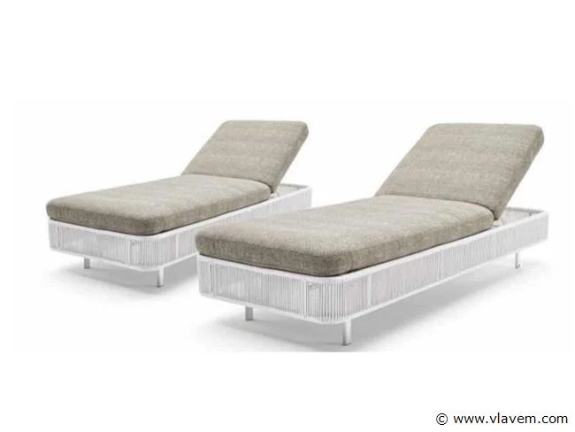 Aantal: 1 Merk: Vonato Productnaam: Ligbed Type: 180140 WHITE Model: 3-delig Kleur: Wit wicker met zandkleurige kussens Afmeting: 3-delige set: 2 * Ligbed - 2100x760x300mm 1 * Bijzettafel - 400x400x400mm Frame: Gepoedercoat aluminium frame - garandeert een langere levensduur Voorzien van: Waterafstotende kussens - weerbestendig vlechtwerk Conditie: Nieuw Ter waarde van: € 1.725,00