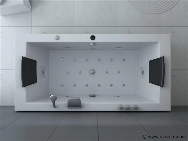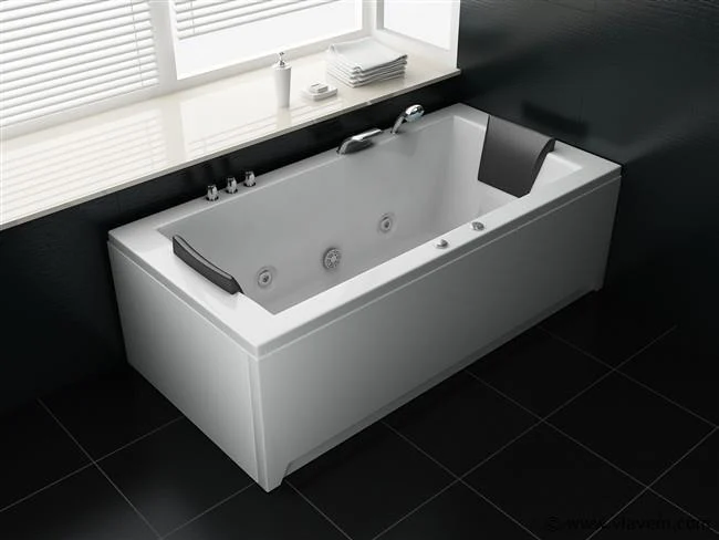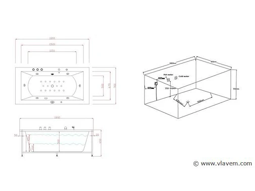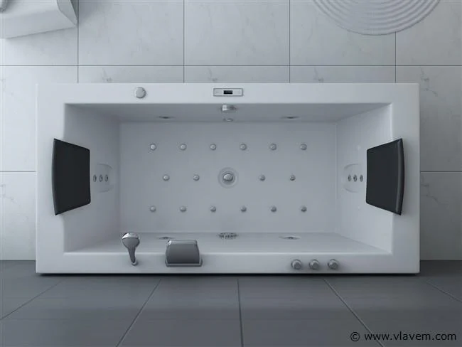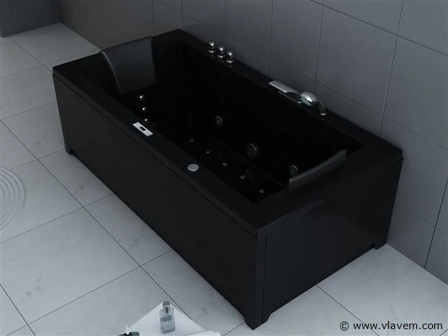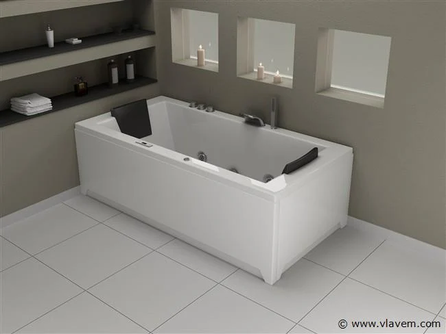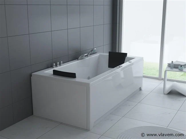 Aantal: 1 Merk: Vonato Productnaam: Massagebad Type: RT1802.1BM.OB Model: Half vrijstaand Afmeting: 1830x900x720mm Kleur: Hoogglans wit Waterjets: 4 Grote waterjets en 16 airbubble jets. Voorzien van: Gegalvaniseerd stalen frame - Computer panel - Handdouche - 2 Hoofdkussens - LED-verlichting (7 stuks) - Luchtpomp - Verchroomd RVS Kraan/ waterval. Heater, Ozone, Thermostatische kraan Conditie: Nieuw Ter waarde van: € 4.295,00