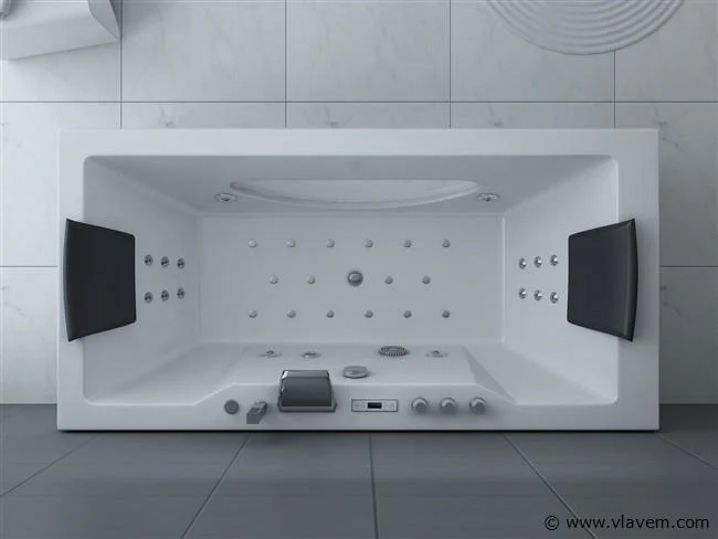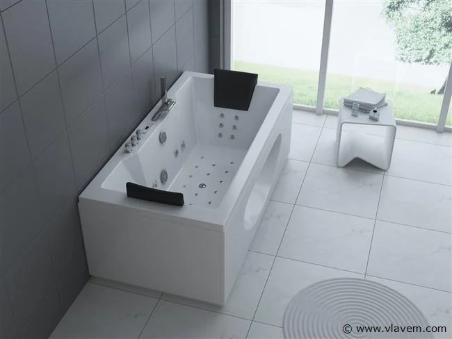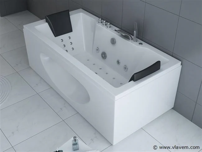 Aantal: 1 Merk: Vonato Productnaam: Massagebad Type: MT-RT1804NEW Model: Half vrijstaand Afmeting: 1800x900x560mm Kleur: Hoogglans wit Waterjets: 4 Grote- en 12 kleine waterjets - 16 Airbubble jets Voorzien van: Gegalvaniseerd stalen frame - Waterpomp (0,74 kW) - Luchtpomp (0,25 kW) - Heater (1,5 kW) - Control Panel - Thermostatische kraan - Handdouche - Watercirculatie - Onderwater LED-verlichting (2 stuks) - 2 Hoofdkussens - Ozone generator. Conditie: Nieuw Ter waarde van: € 5.195,00