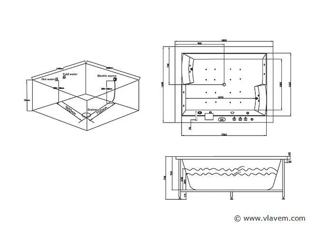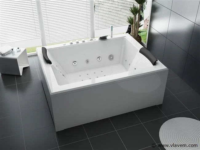 Aantal: 1 Merk: Vonato Productnaam: Massagebad Type: RT1806T Model: Half vrijstaand Afmeting: 1800x1450x740mm Kleur: Hoogglans wit Waterjets: 6 Grote- en 10 kleine waterjets, 16 airbubble jets. Voorzien van: Gegalvaniseerd stalen frame - Luchtpomp (0.25 kW) - Waterpomp (0,74 kW) - Heater (1.5kW) - Control Panel - Ozone generator - Thermostatische Kraan - Handdouche - Watercirculatie - Onderwater LED-verlichting (2 stuks) - 2 Hoofdkussens - Waterval kraan. Bijzonderheden: Zowel links- als rechtszijdig te plaatsen. Conditie: Nieuw Ter waarde van: € 5.295,00