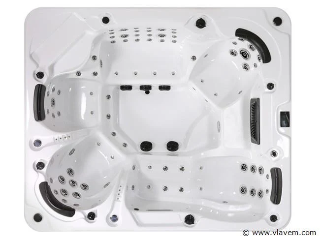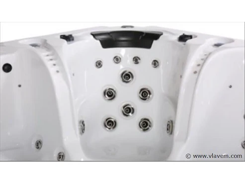 Aantal: 1 Merk: Vonato Productnaam: Outdoor Spa met Waterjets Type: PF SPA 02 Model: Vrijstaand Aantal personen: 7 persoons bad Afmeting: 2600x2200x920mm Kleur: Zwart bad met grijze skirt Gewicht: 510KG Inhoud: 1750 Liter Frame: RVS Besturing: Balboa spa pack BP6013G2 3kW + SpaTouch 2T Aantal jets: 96 massagejets Media apparatuur: 2x Aquatic AV speakers, Bluetooth & WIFI Verlichting: 15x onderwaterverlichting, 1x spa spotlight, 4x hoekverlichting, 3x LED fontein Vermogen: Totaal vermogen 9.5 kW, 32A. 240 V, 50 HZ Heater: Balboa Heater 3KW Pompen: Circulatiepomp: WTC50M, Massagepomp: 2 x LP300 en 1 x LP200 Voorzien van: Balboa WiFi - Waterval & 3 LED fonteintjes – Ozonator – 4 hoofdkussens – Drain – 2x Waterverdeler – 3x Lucht controller - 2 filters - Thermo cover – Bottom tray - 2 Speakers – Isolatie – Trapje – Muziek luisteren via Bluetooth Conditie: Nieuw