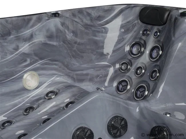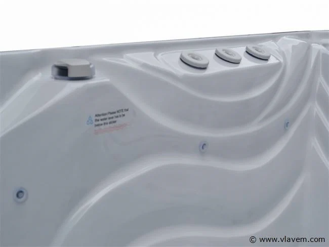 Aantal: 1 Merk: Vonato Productnaam: Outdoor Spa met Waterjets Type: PF SPA 86 Model: Vrijstaand Aantal personen: 5 persoons bad Afmeting: 2200x2200x900mm Kleur: Grijs bad met grijze skirt Gewicht: 428KG Inhoud: 1150 Liter Frame: RVS Besturing: Balboa spa pack BP6013G2 3kW + SpaTouch 2T Aantal jets: 139 massagejets Media apparatuur: 2x Aquatic AV speakers, Bluetooth & WIFI Verlichting: 11x onderwaterverlichting, 2x spa spotlight, 4x hoekverlichting, 3x LED fontein Vermogen: Totaal vermogen 10,5 kW, 32A. 240 V, 50 HZ Heater: Balboa Heater 3KW Pompen: Circulatiepomp : WTC50M, Massagepomp: 3 x LP300 Voorzien van: Balboa WiFi - Waterval & 3 LED fonteintjes – Ozonator – 3 hoofdkussens – Drain – 2x Waterverdeler – 2x Lucht controller - 1 filter - Thermo cover – 2 Speakers – Isolatie – Trapje – Muziek luisteren via Bluetooth Conditie: Nieuw