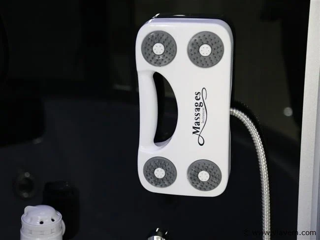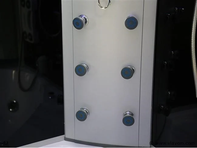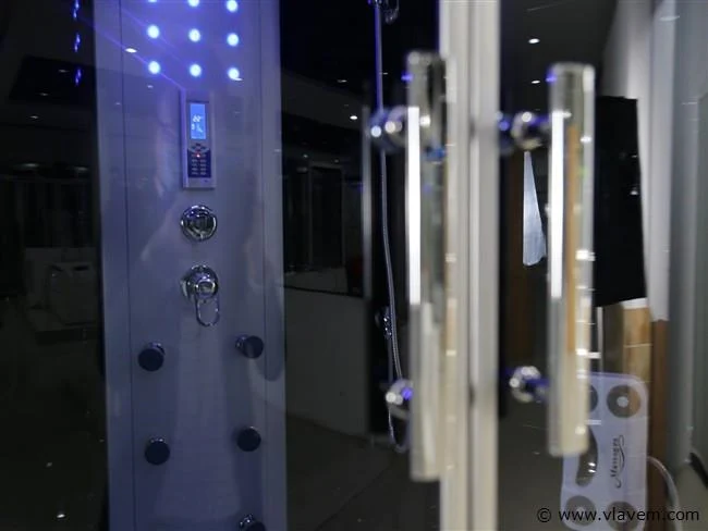 Aantal: 1 Merk: Vonato Productnaam: Stoomcabine met massagebad Type: 2586W Model: Massagebad - Halfrond Afmeting: 1350x1350x2200mm Waterjets: 6 Waterjets zorgen voor een aangename rugmassage. Voorzien van: Schuifdeuren met waterdichte afsluiting - Hand- en regendouche - Digitaal bedieningspaneel - Sfeerverlichting - FM-radio met speaker en CD-aansluiting - Port om de telefoon op aan te sluiten - Antislip bodem - Ventilator - Cabine staat op verstelpoten die eenvoudig te stellen zijn in hoogte. Conditie: Nieuw Ter waarde van: € 4.695,00