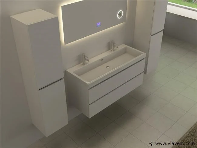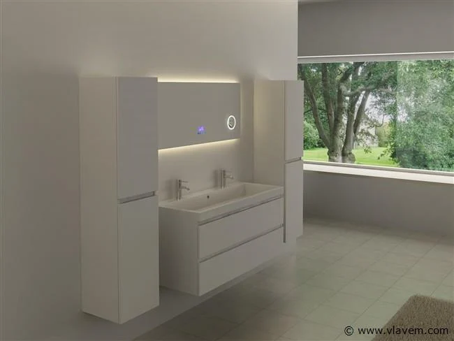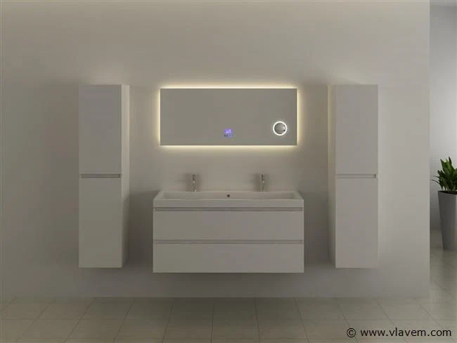 Aantal: 1 Merk: Vonato Productnaam: Badkamerspiegel Type: RALM-120 Model: Rechthoekige spiegel met LED verlichting Afmetingen: 1200x500x5 mm Kleur: LED verlichting in 3 kleuren; geel, blauw en wit Voorzien van: Touch bediening via digitaal display – LED verlichting in 3 kleuren, dimbaar – Bluetooth & speakers – Digitale klok – Digitale temperatuurmeter – 220 volt aansluiting – Anti-fog technologie door verwarming in de spiegel – Vergrootglas (vergroot 3x) in de spiegel Ø10 cm - Kopervrije spiegel - 1,5mm explosieveilige laag aan de achterkant. Conditie: Nieuw Ter waarde van: € 445,-